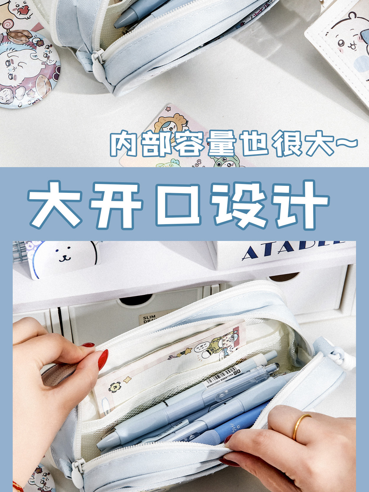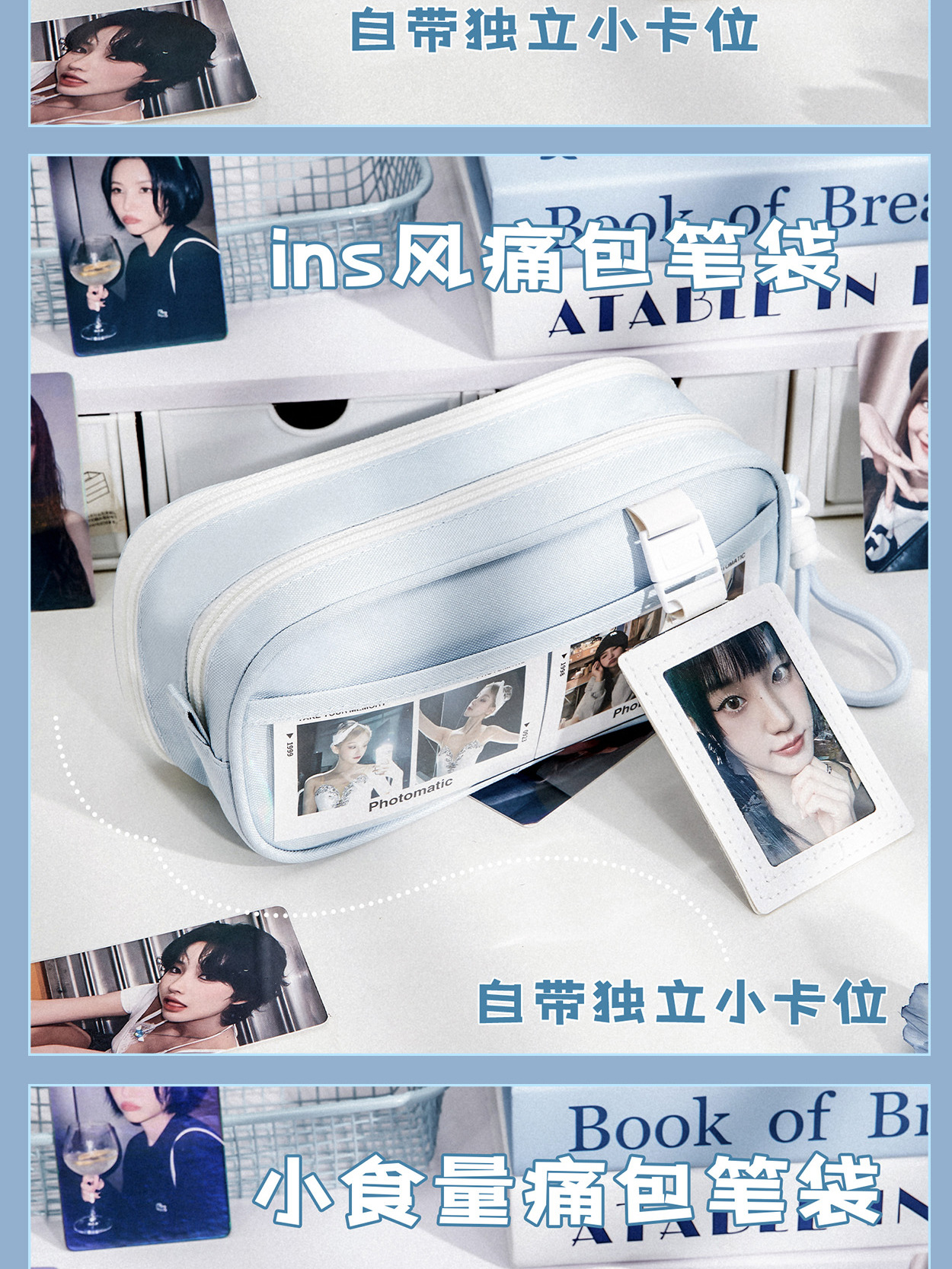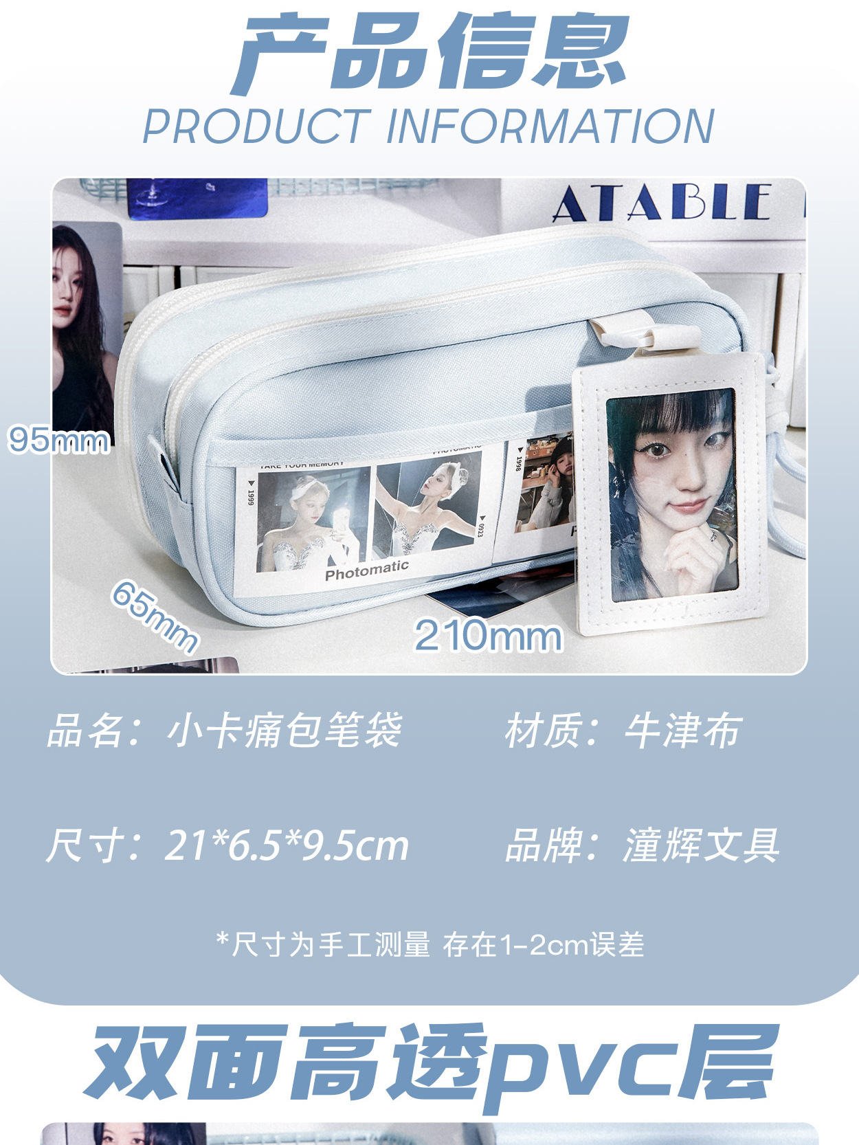透明笔袋大容量初中透明女孩文具盒可视窗口多功能吧唧痛包文具袋