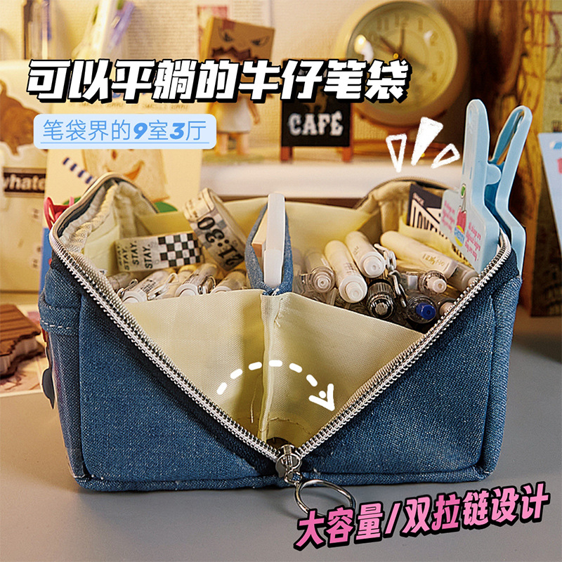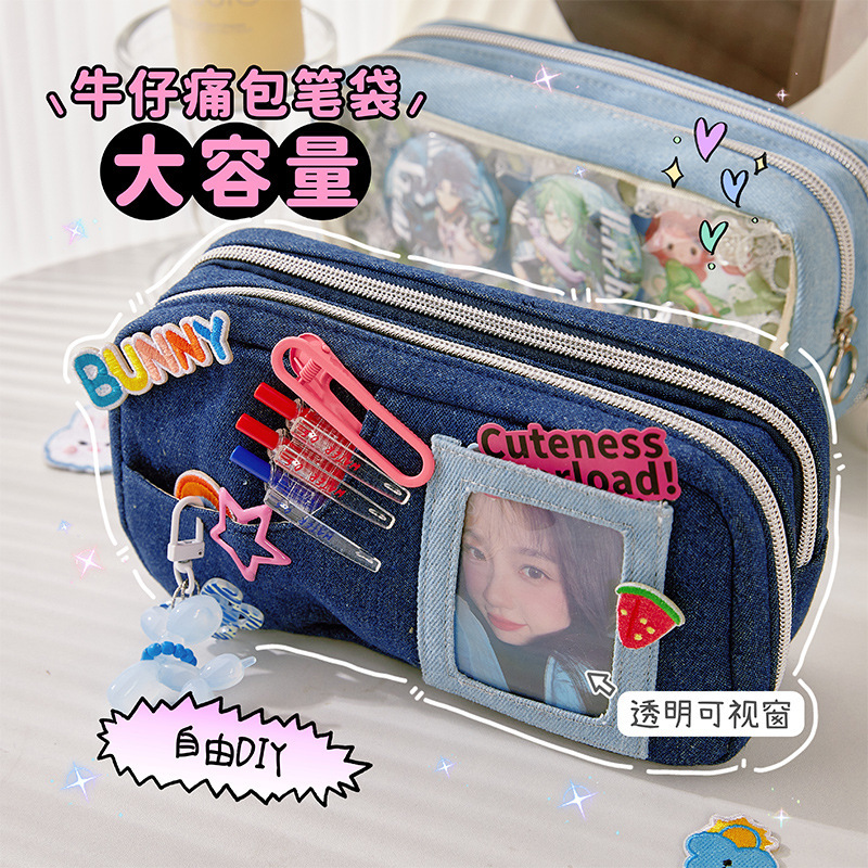 大容量デニム痛バッグペンケースins女の子女の子女の子高颜値収纳ペンケースDIY文房具铅笔ケース