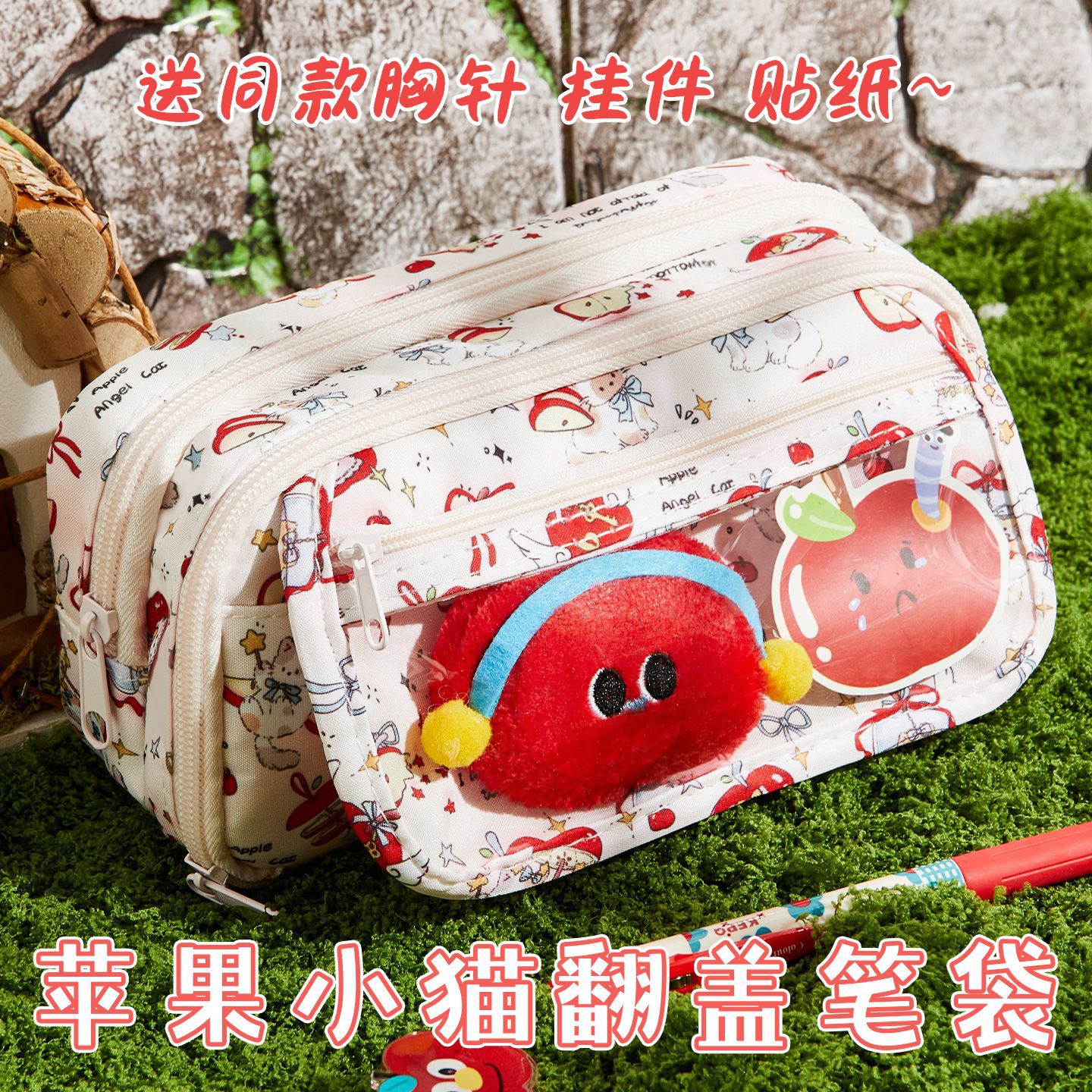 Apple 子猫痛バッグ鉛筆バッグインガールズ 2025 新しい高価値文具箱大容量学生筆箱