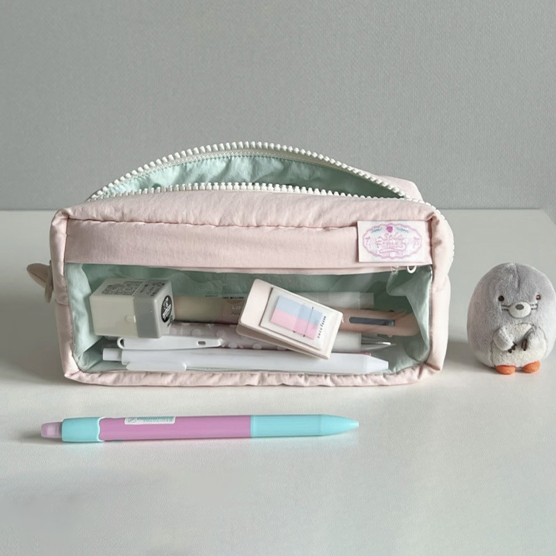 粉色方糖痛包笔袋简约少女文具袋高颜值学生可爱铅笔袋大容量收纳