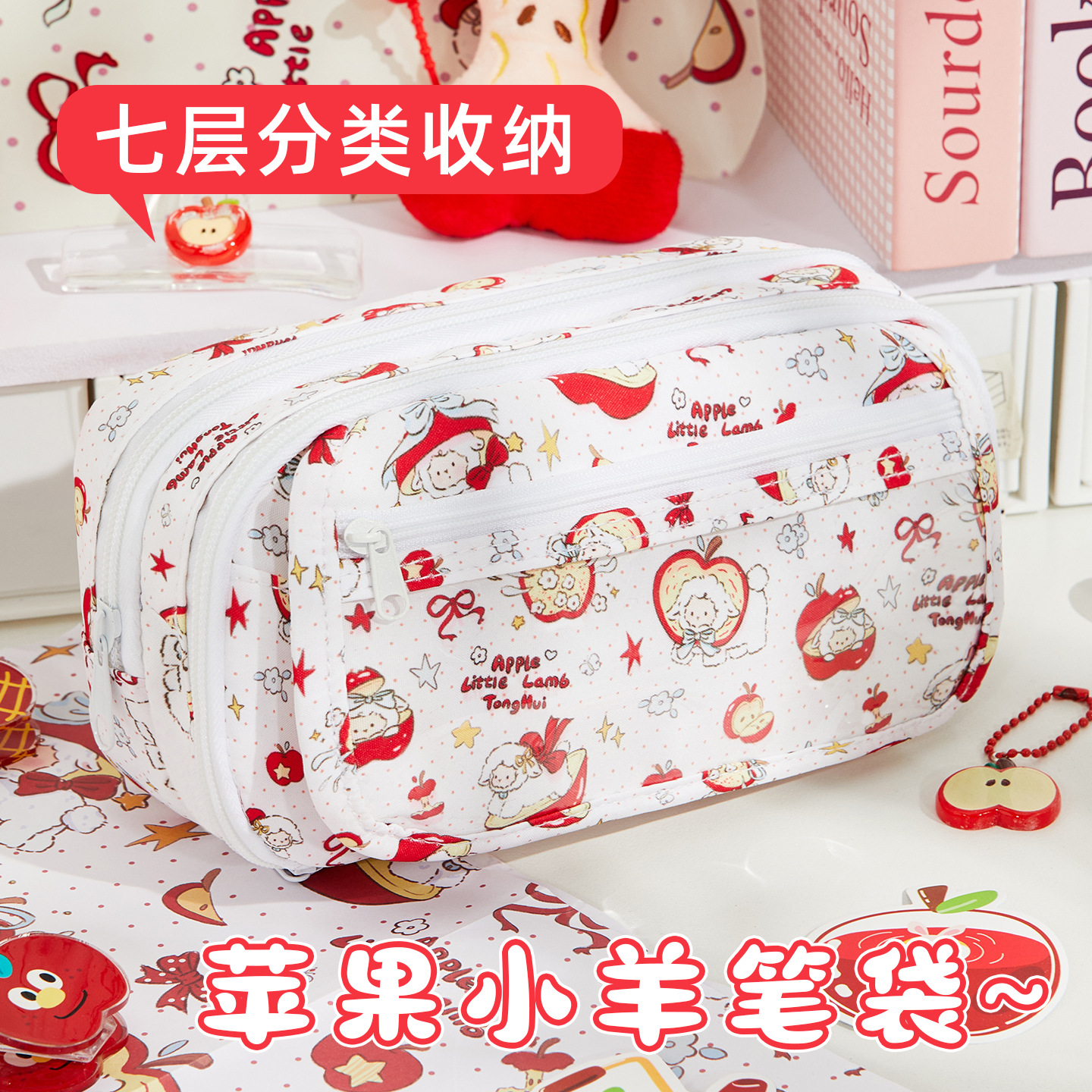 Tonghui アップル子羊鉛筆バッグ高価値 ins 学生痛バッグ文具箱女の子 2025 大容量筆箱