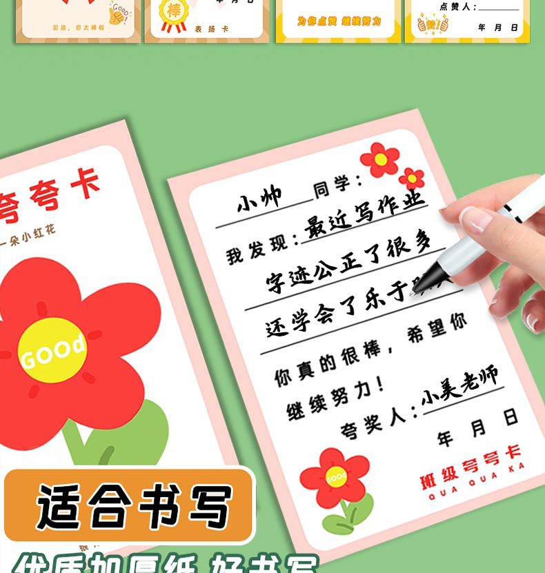 班级奖励夸夸卡表扬小红花卡片学习目标卡纸夸奖孩子纸条教室文化