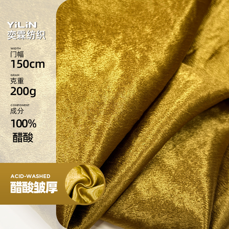 重磅醋酸面料加厚绉缎褶皱亮光缎面肌理感西装连衣裙套装布料