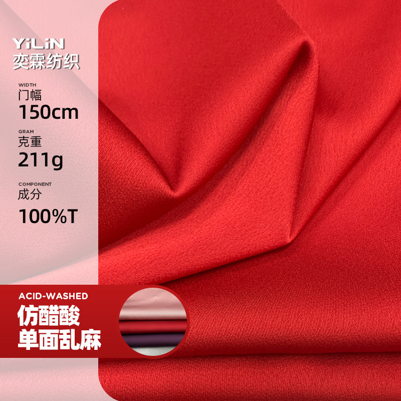 片面が乱雑な模様のイミテーションアセテート生地、赤色の光沢のあるシルクサテン生地、イブニングドレスやワンピースの生地、ポリエステルサテン