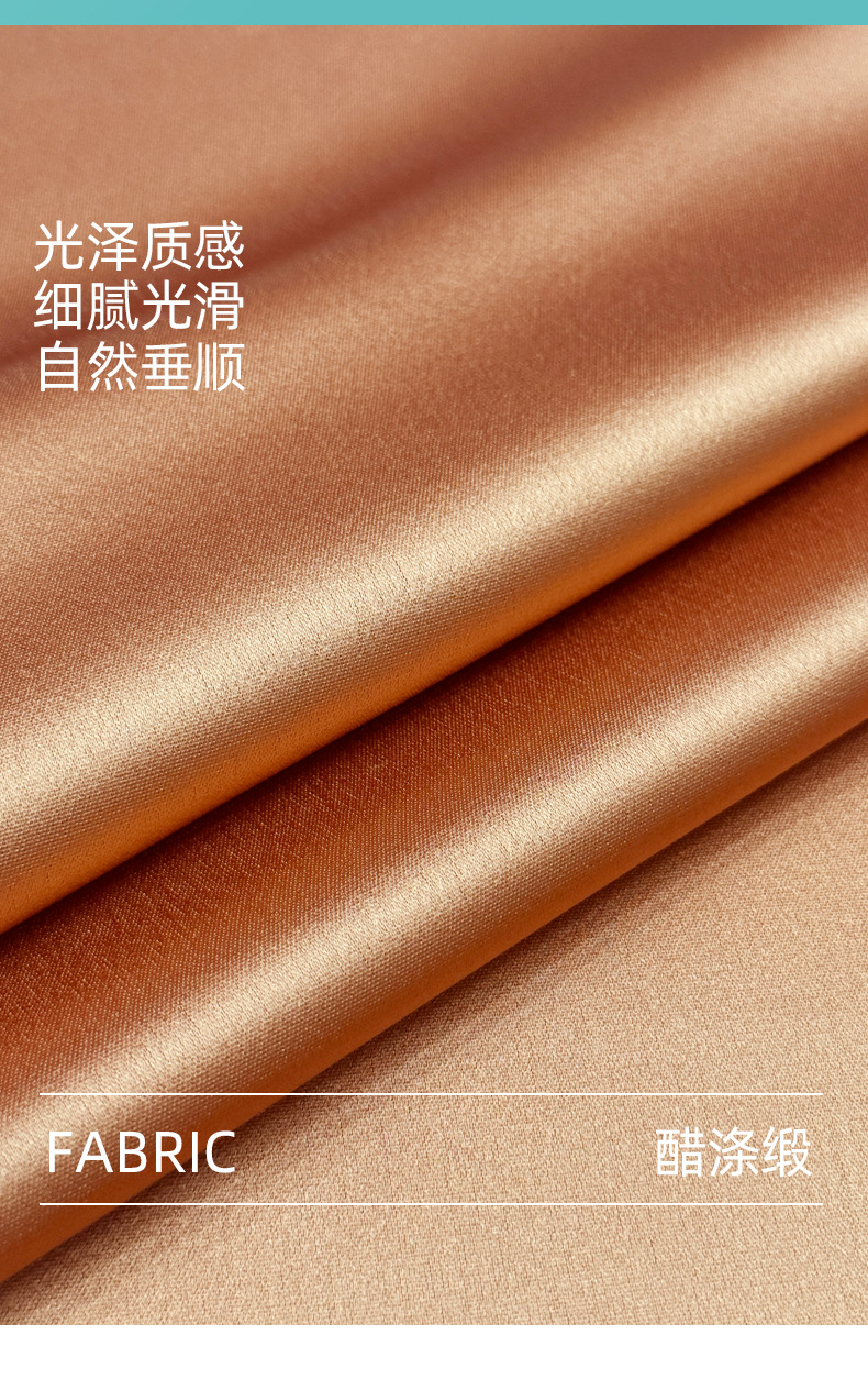 純色の両面酢酸サテン生地の光沢感は、シルクサテンの通気性を模倣しています。
