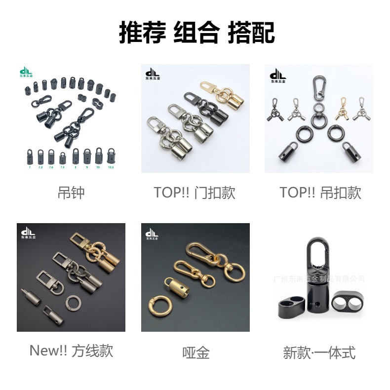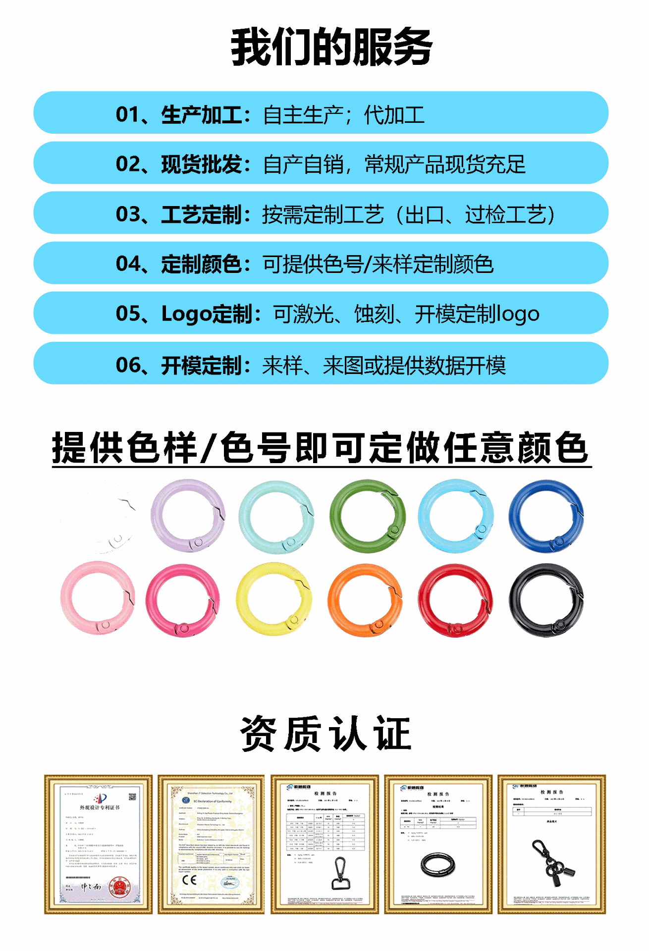 新款手机挂绳配件金属扁线弹簧圈8mm吊钟钩扣8字扣方形门扣套装