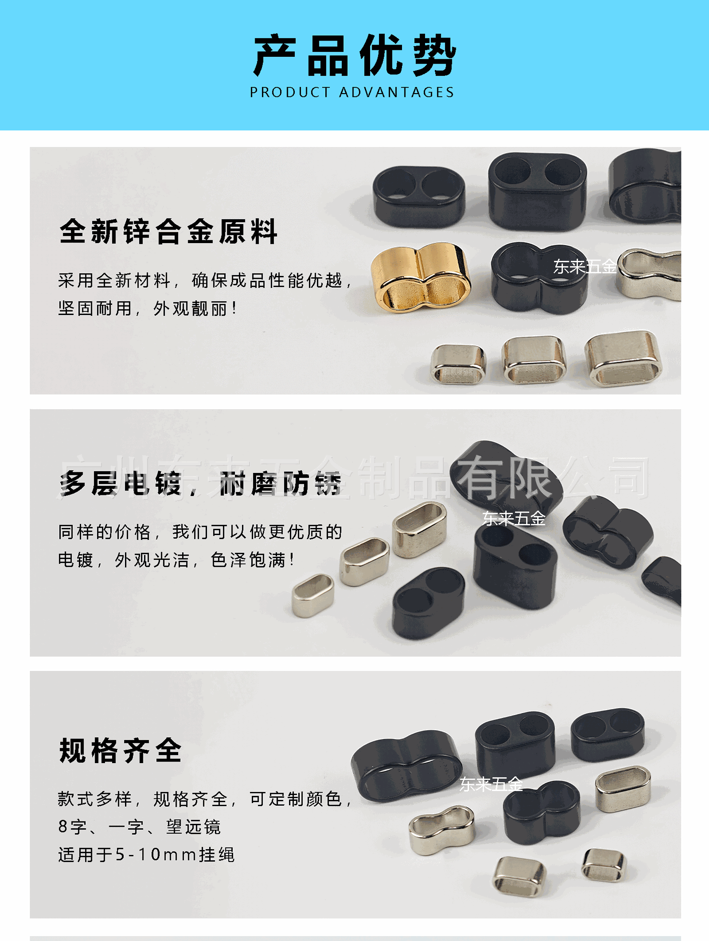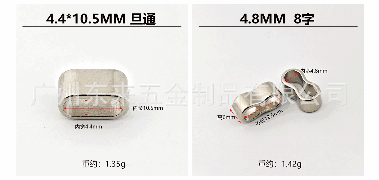 6MM金属双孔绳扣批发双向五金通孔吊钟服装箱包锌合金双相调节扣