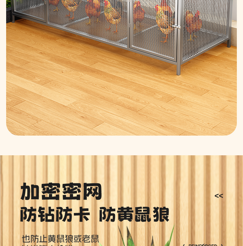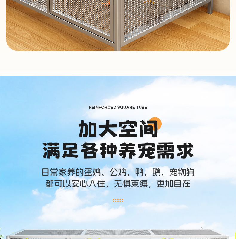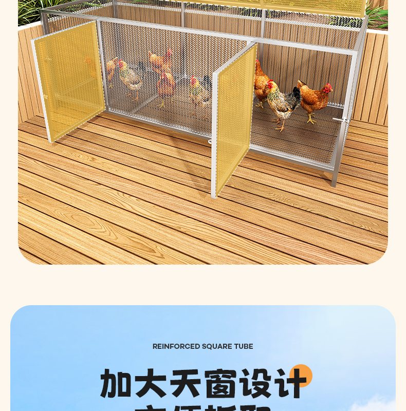 鶏小屋家庭用屋外大型角管密メッシュ防雨田舎ルチン自動糞便洗浄飼育ケージ黄鼠狼防止