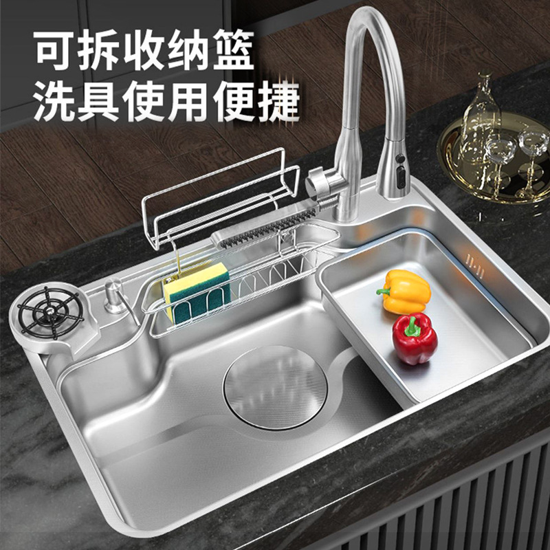 日式大单槽特厚304不锈钢水槽厨房大集渣网压纹台下一体洗菜盆