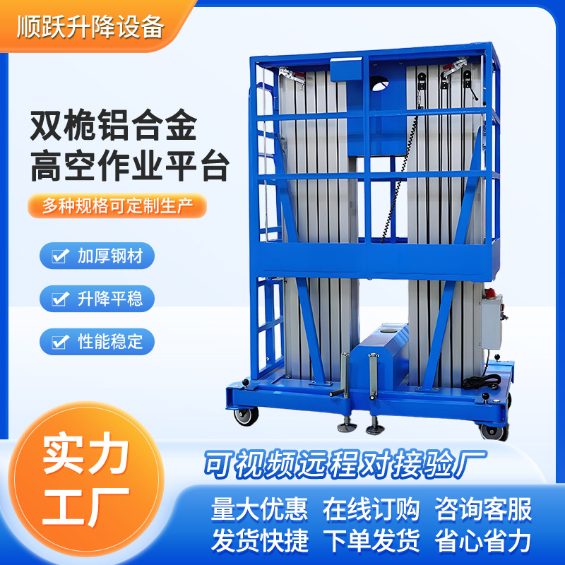 ダブルマストアルミニウム合金高所作業プラットフォームメーカーは、強力な耐荷重能力を備え、産業用倉庫の高所作業のメンテナンスに適しています。