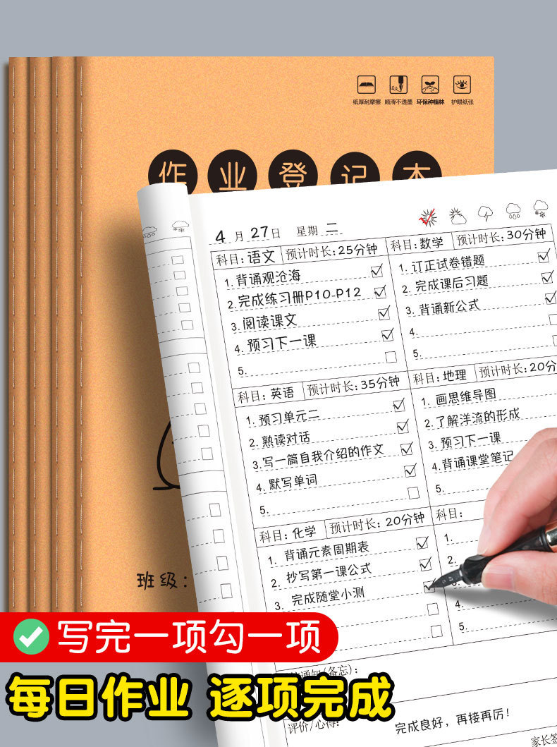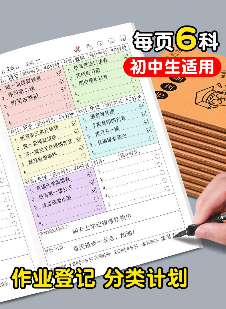 小学生作业打卡本学习自律本自律学习计划表每日规划记录表时间表