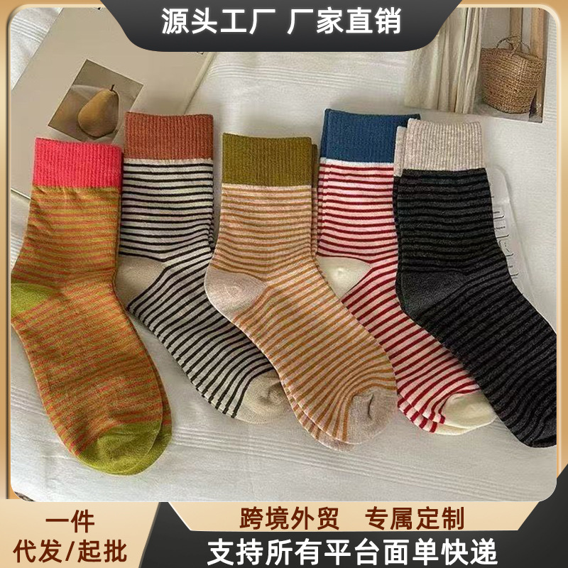 秋の靴下の女性は色の羅口の復古的な暖色系にぶつかります。