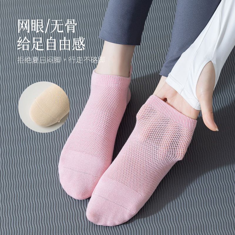 跨境批发瑜伽袜子女夏季薄款短袜棉质网眼吸汗透气专业运动健身防