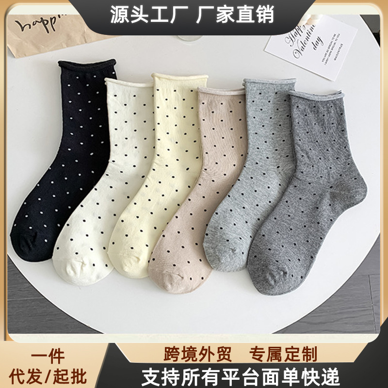 波点の靴下の子供の中の筒の靴下の春秋の金の巻きの縁の積み重ねの靴下の女性の夏の韓国版の日系の学生の少女