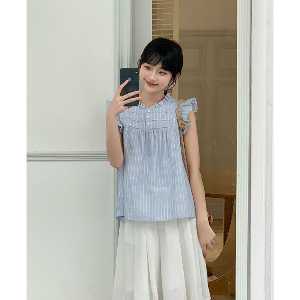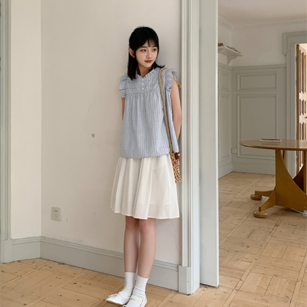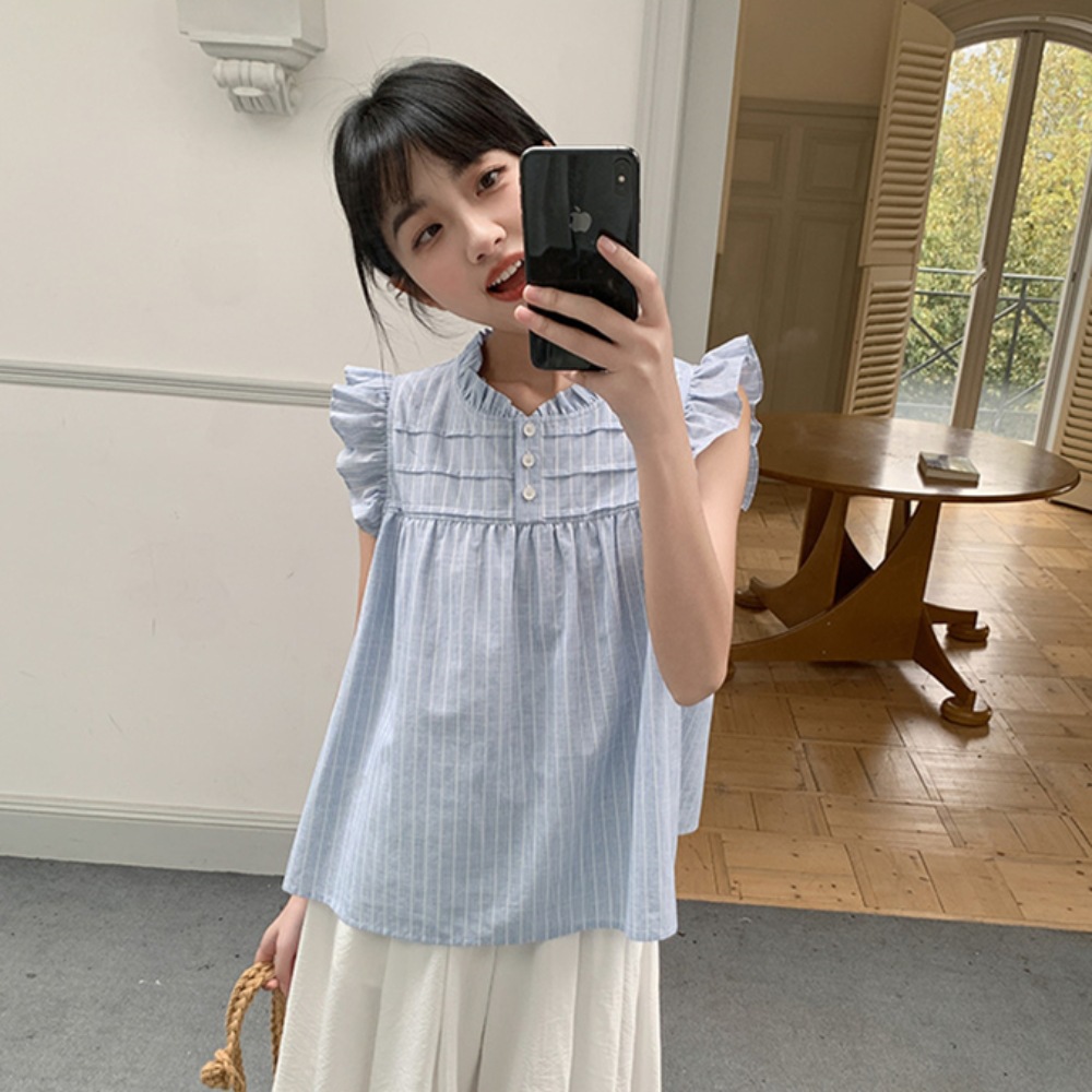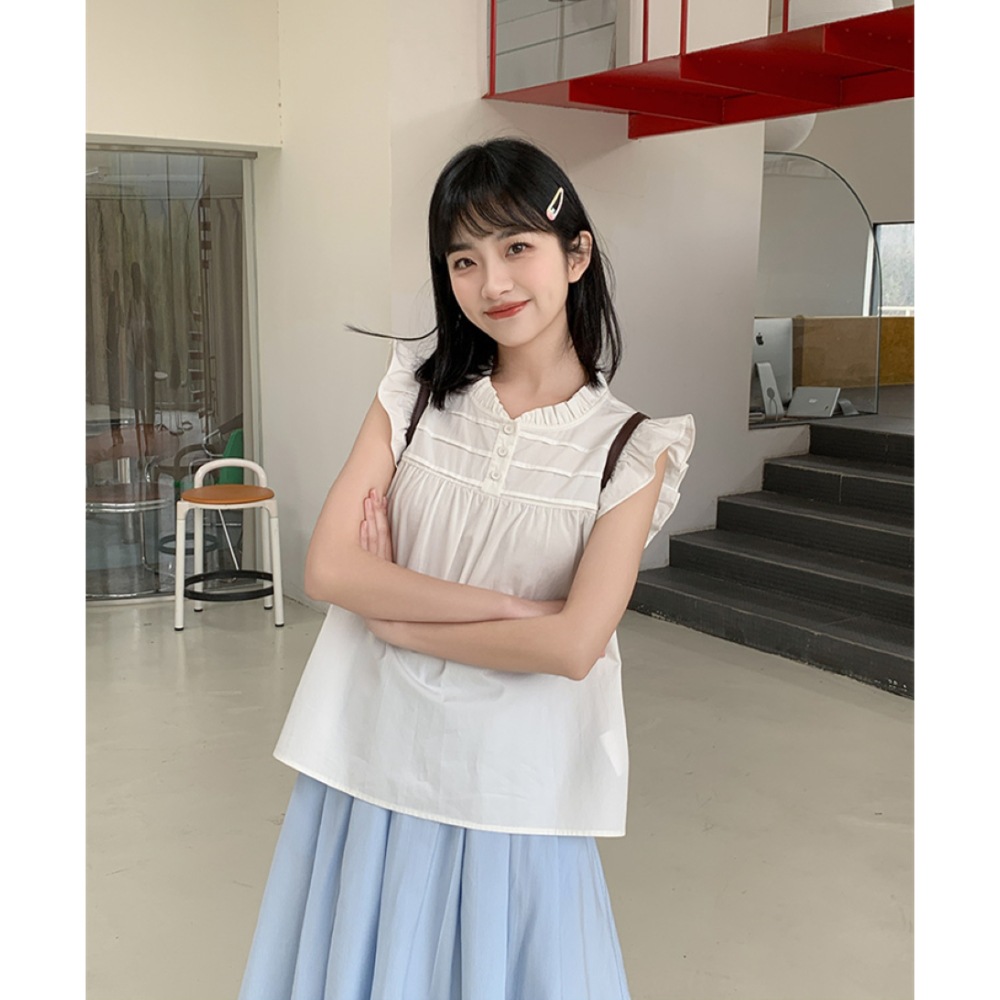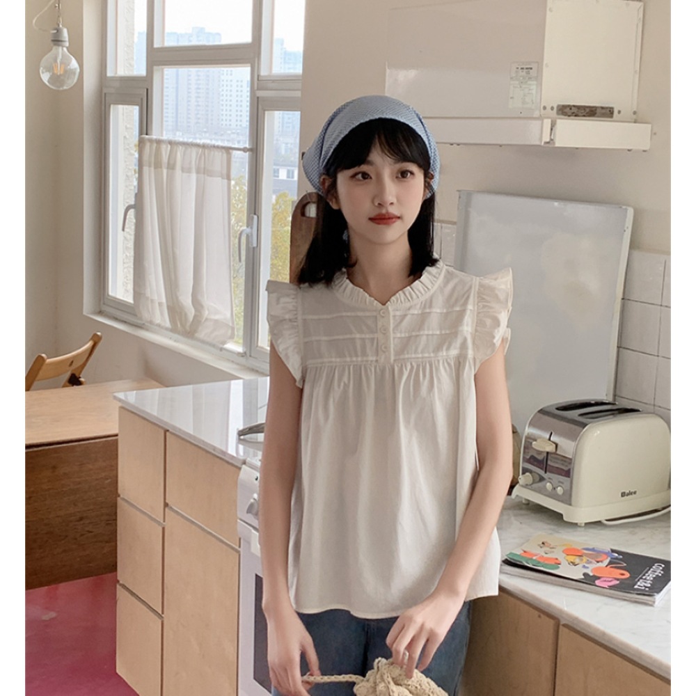 2025 新しい夏の女性用レースフライングスリーブシャツ、フレンチニッチデザイン、スリムで多用途な女性用スイートトップ