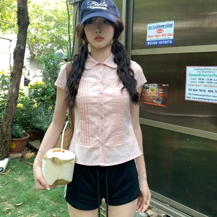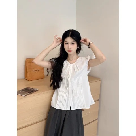 夏の新型女性ins韓系減齢バンドの半袖シャツは甘くてシンプルで、爆発的な上着の女性です。