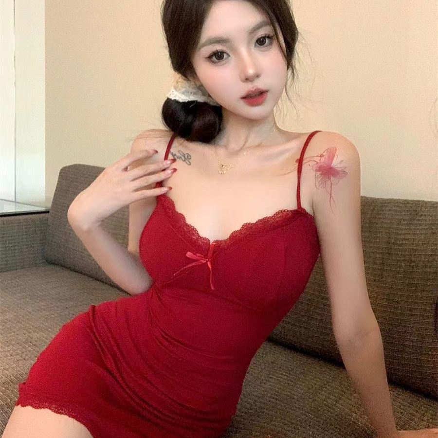 ギャルレース木耳ストラップワンピース女装夏新気質高級感a字スカート