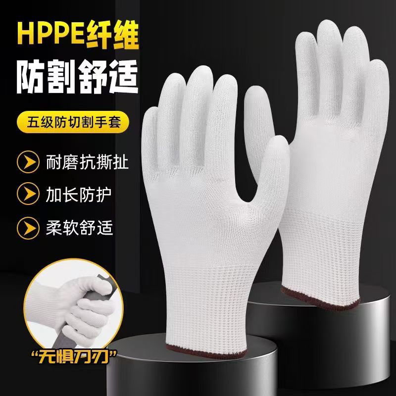 HPPE纤维防切割手套耐磨抗撕五级防切割劳保手套精密针织防割手套