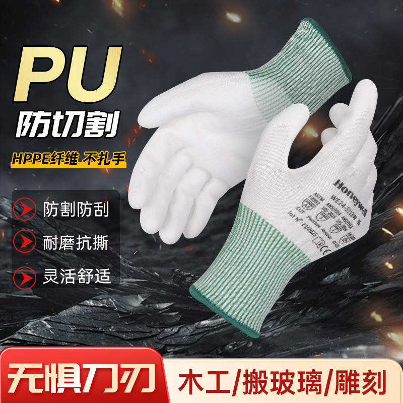 PU防切割手套防割防刮耐撕HPPE纤维涂层手套舒适耐磨防切割手套