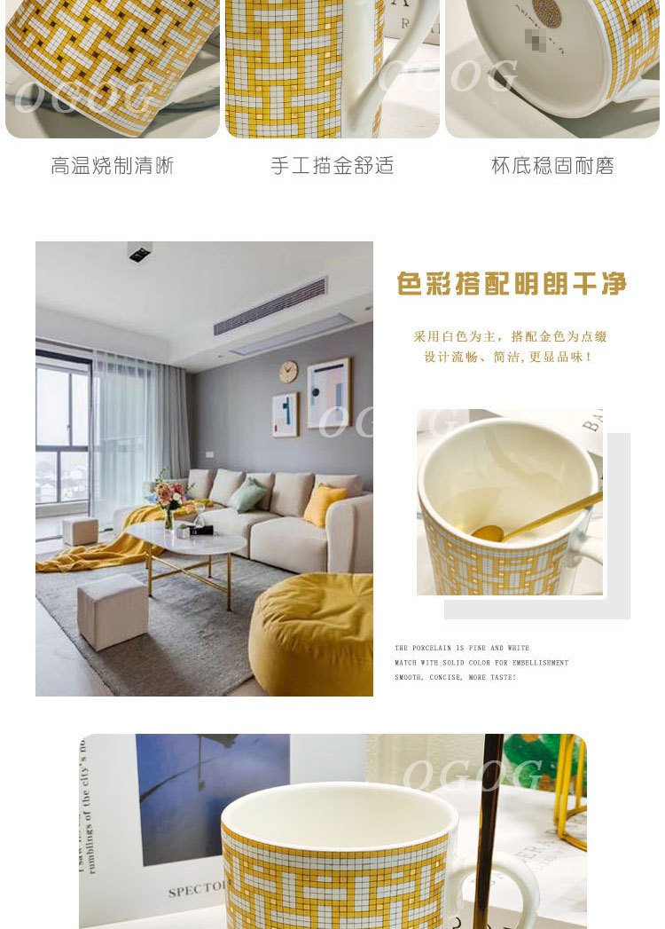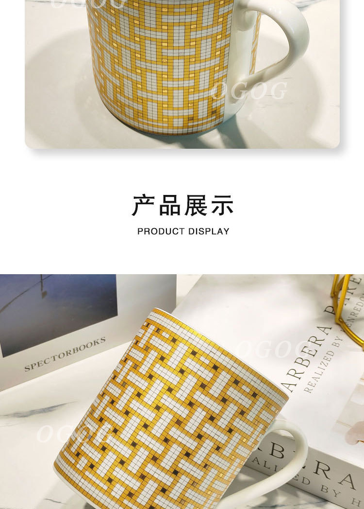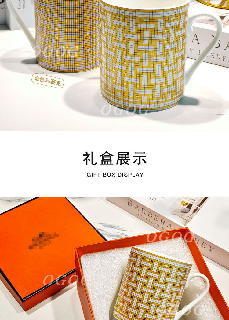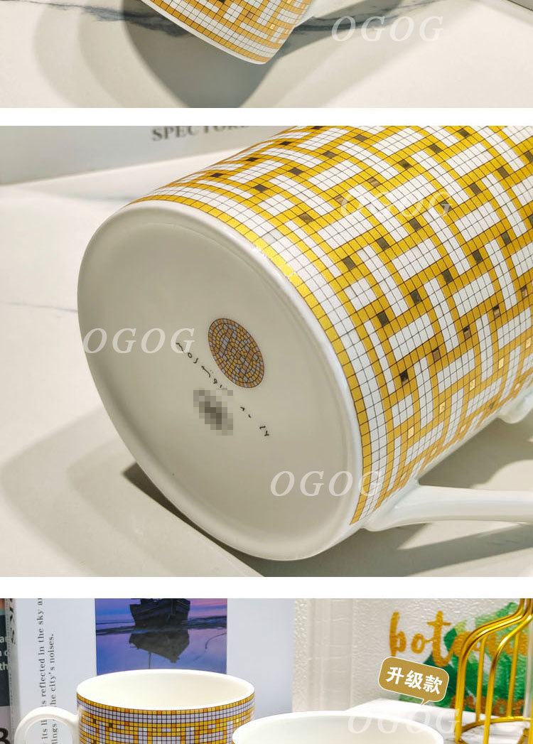 H家升级款金色马赛克骨瓷马克杯办公室家用陶瓷杯子早餐杯礼盒装