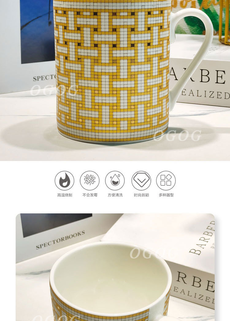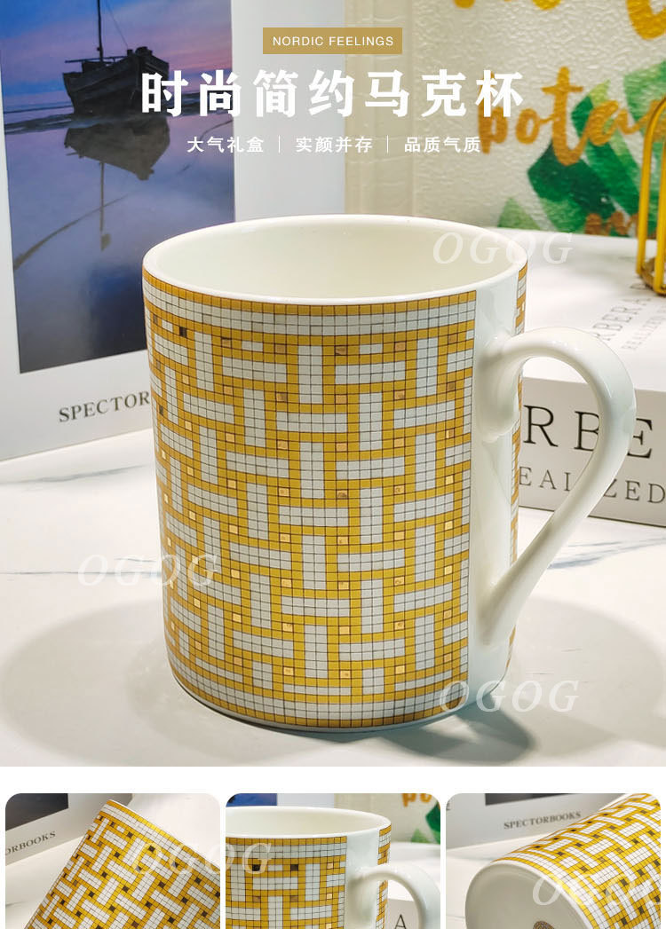 H家经典款马赛克骨瓷马克杯办公司家用大容量陶瓷水杯简约轻奢