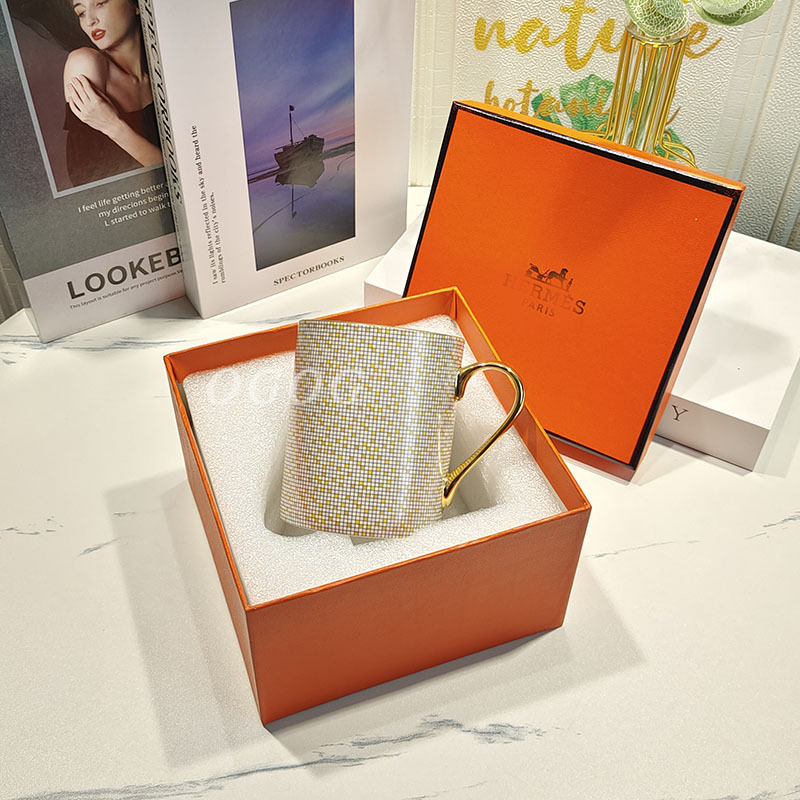 ヨーロッパ式のシンプルなブランドのマグカップの牛乳カップの朝食カップのモザイクの陶磁器の高級な精巧な骨の磁器のh家の礼箱