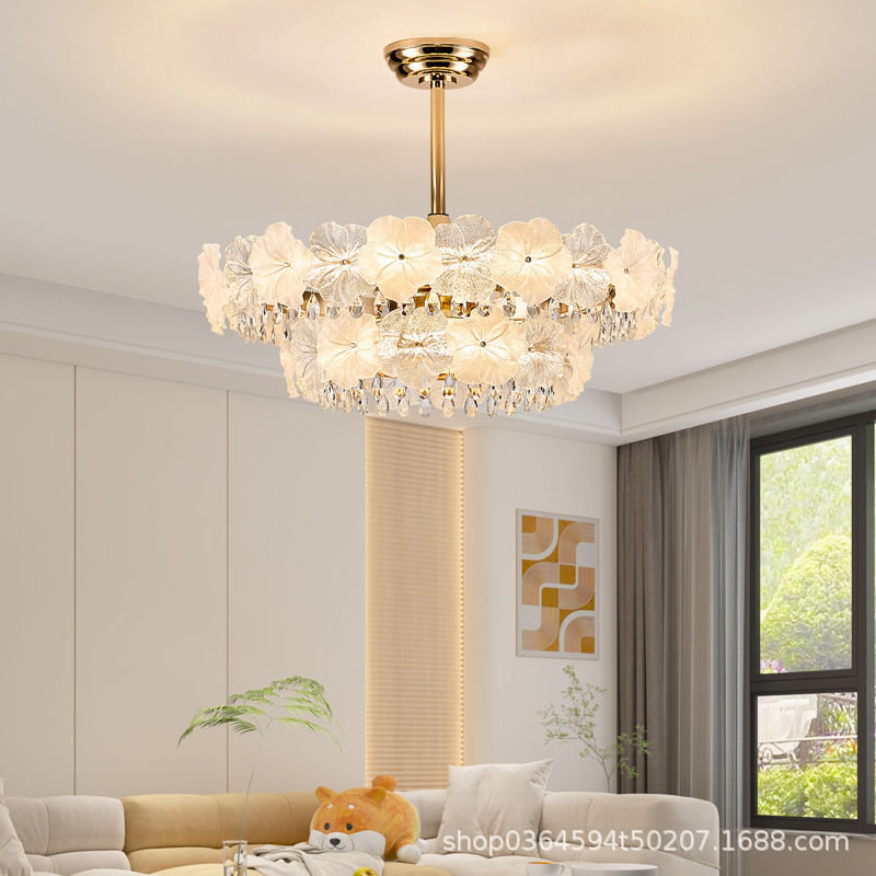 フレンチクリームスタイルリビングルームランプガラスフラワーホールランプダイニングルーム寝室クリスタルシャンデリア
