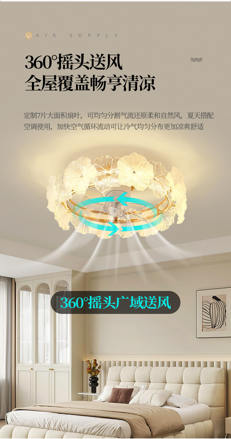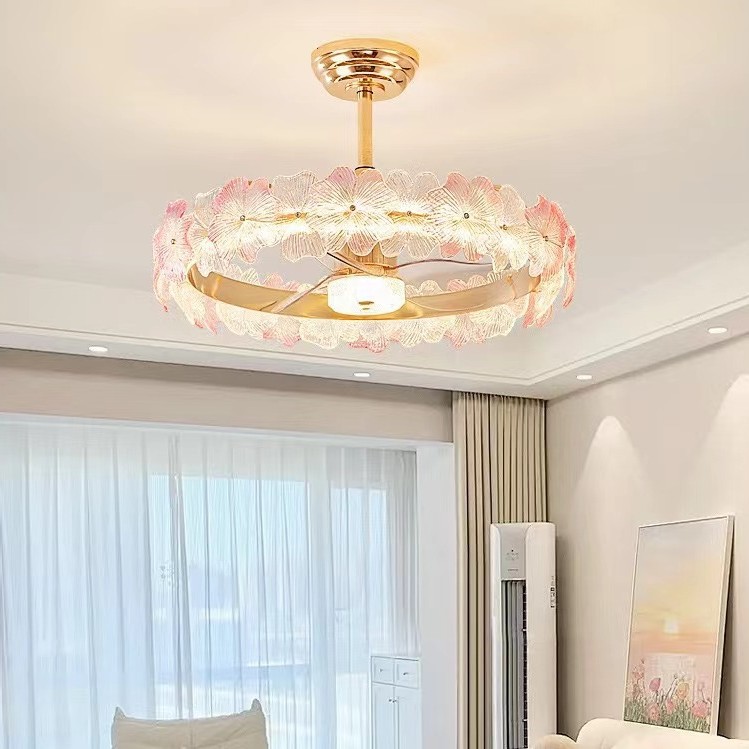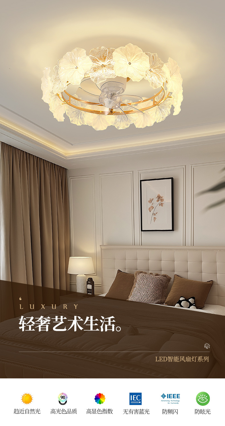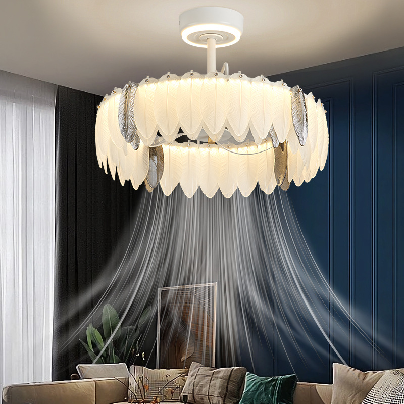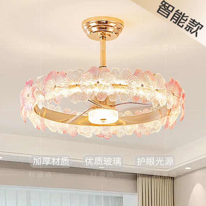 フランスクリーム風シャンデリア家庭用一体シャンデリア客間ファンランプ寝室知能静音ステルス電気ファンランプ
