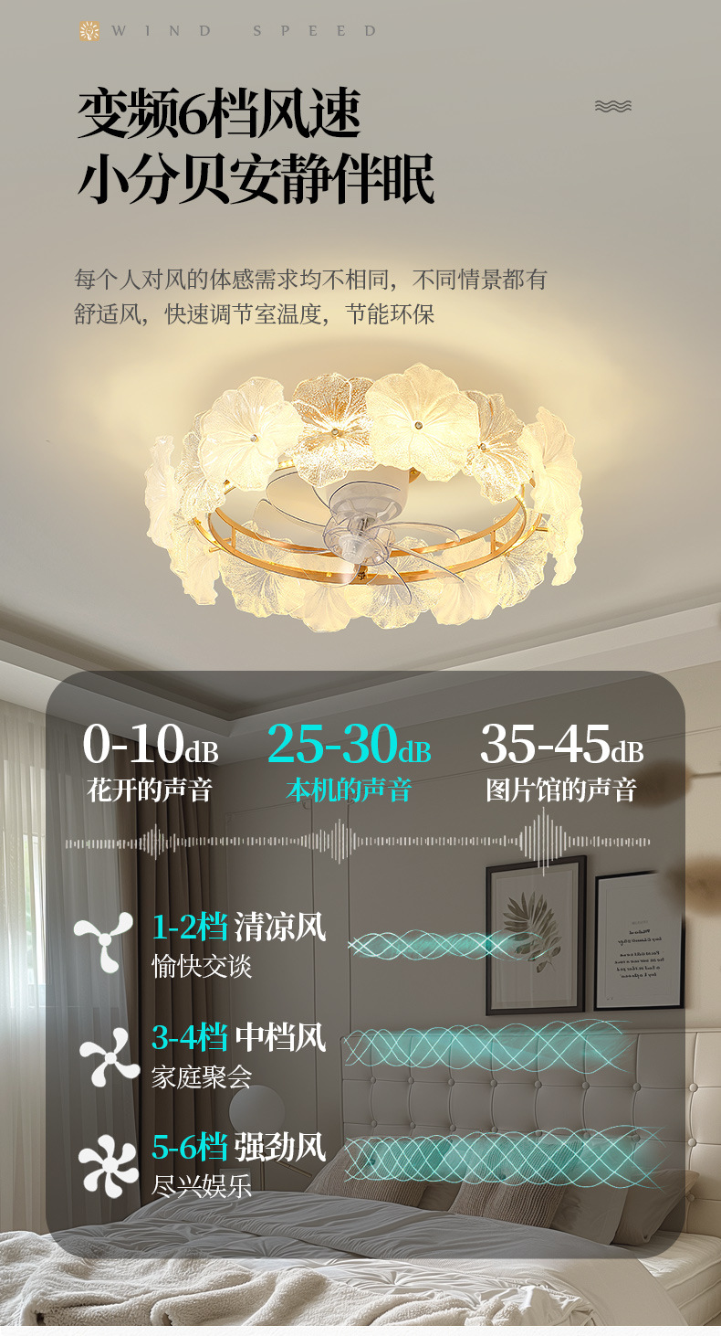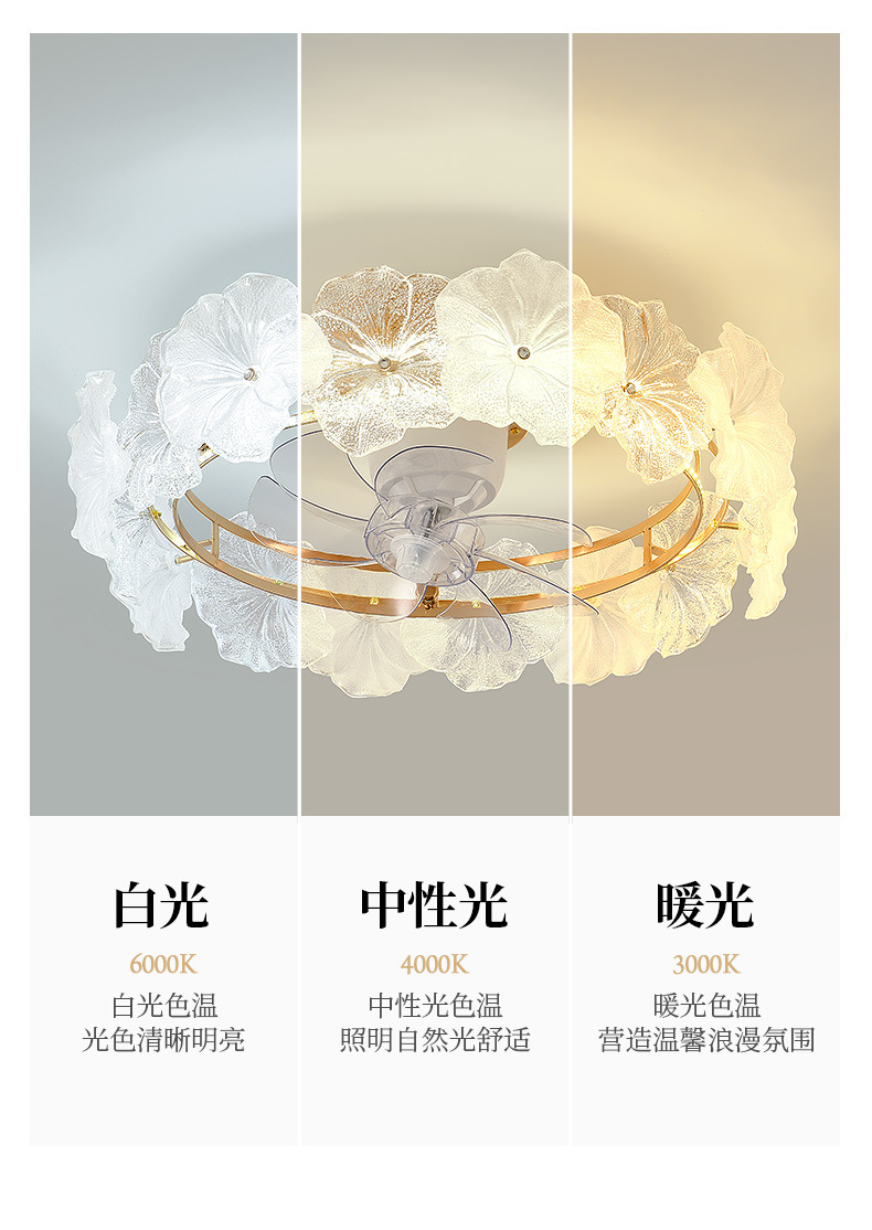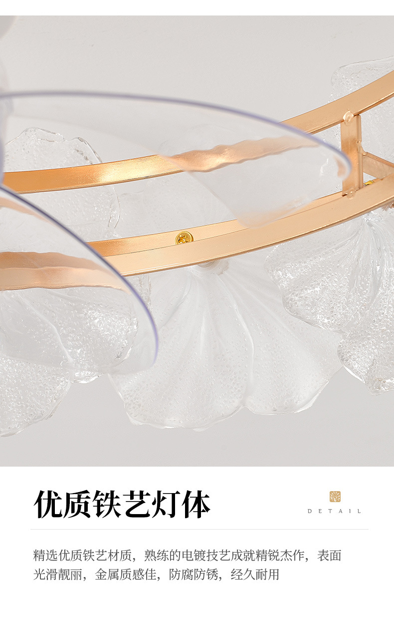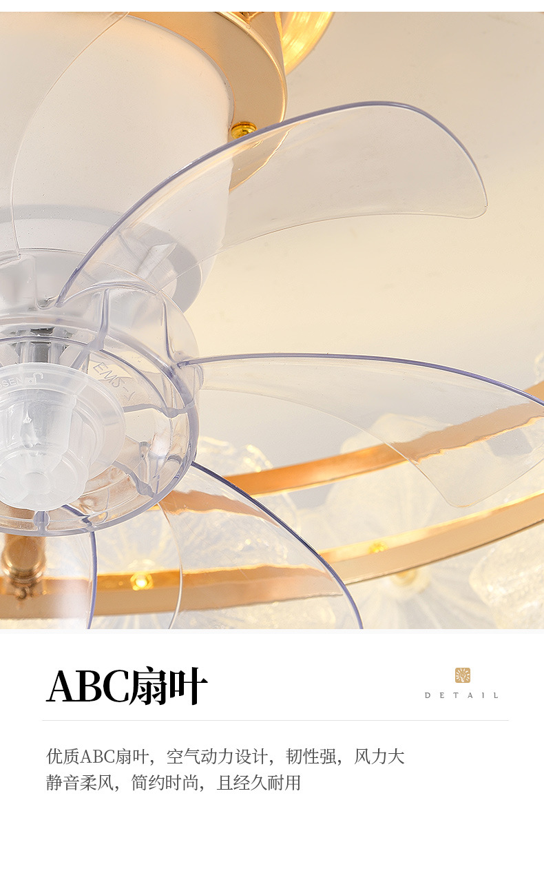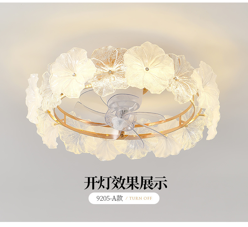 フランスクリーム風シャンデリア家庭用一体シャンデリア客間ファンランプ寝室知能静音ステルス電気ファンランプ