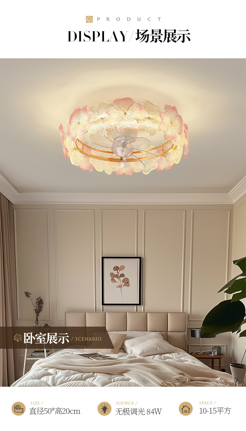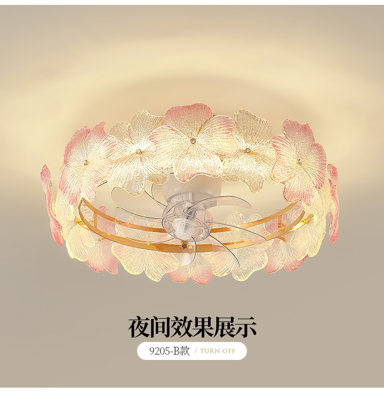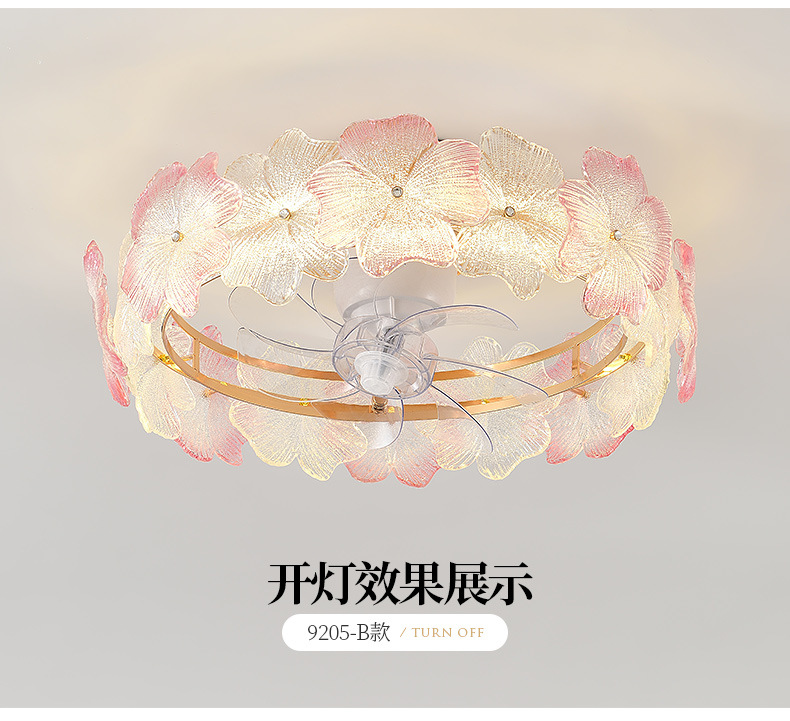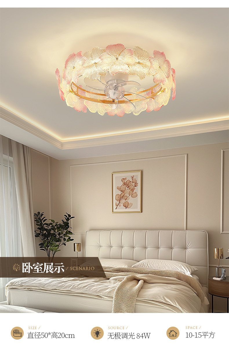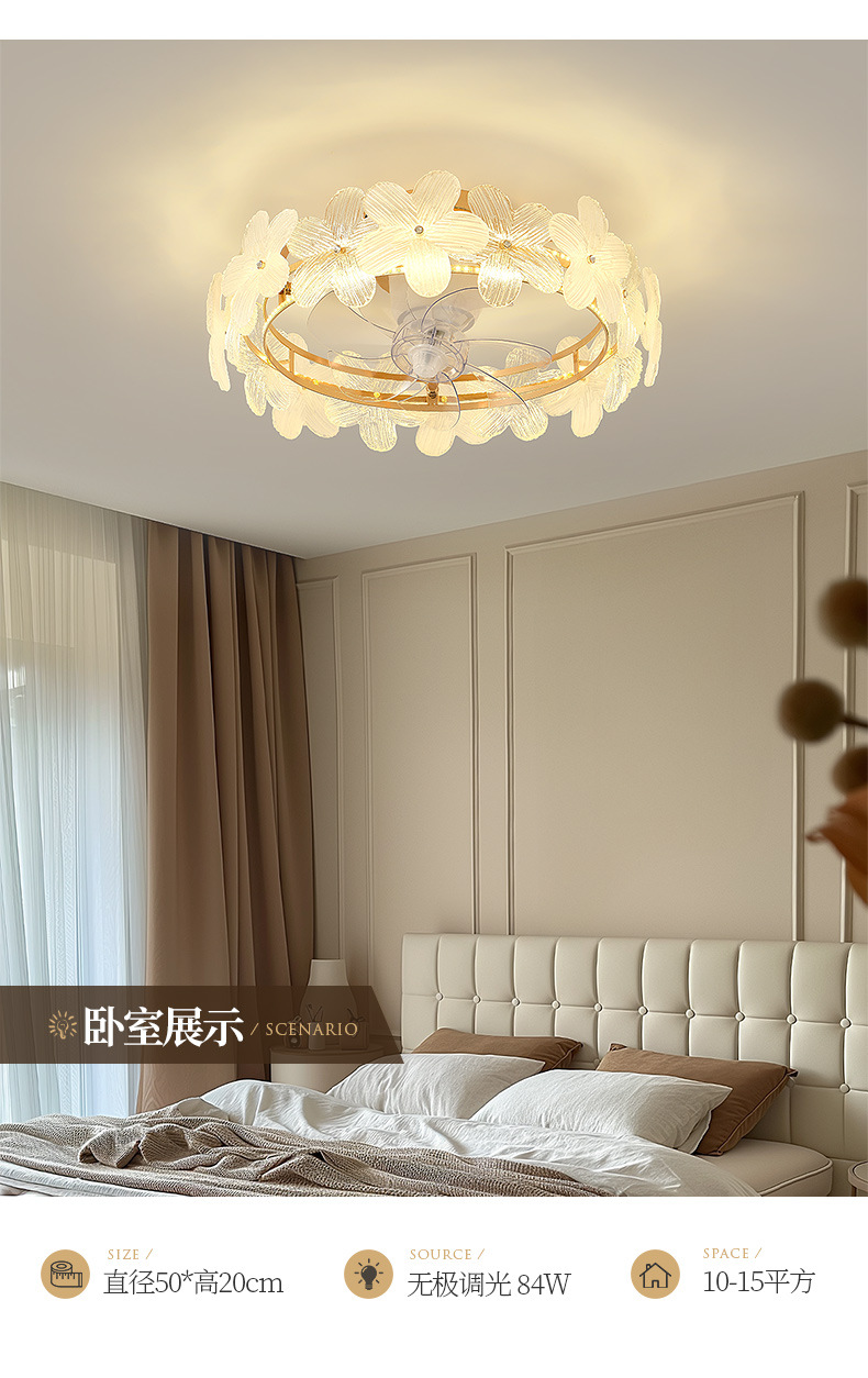 现代简约风扇灯奶油风温馨浪漫花朵吸顶灯房间灯具法式轻奢卧室灯