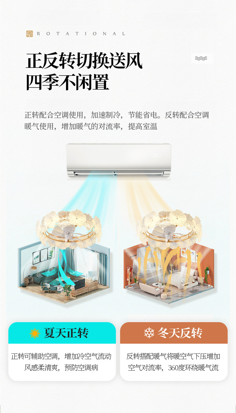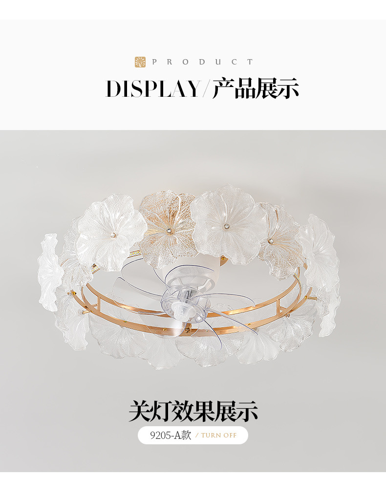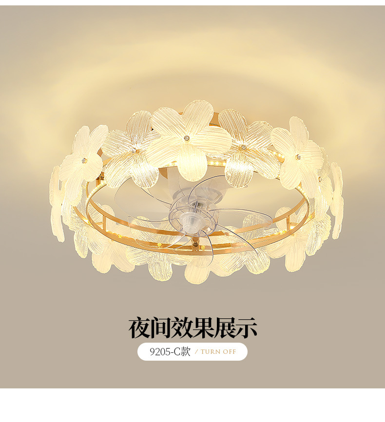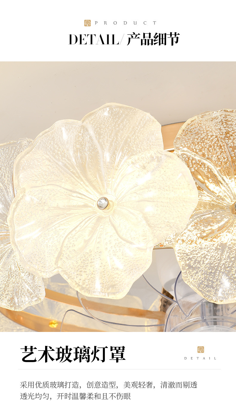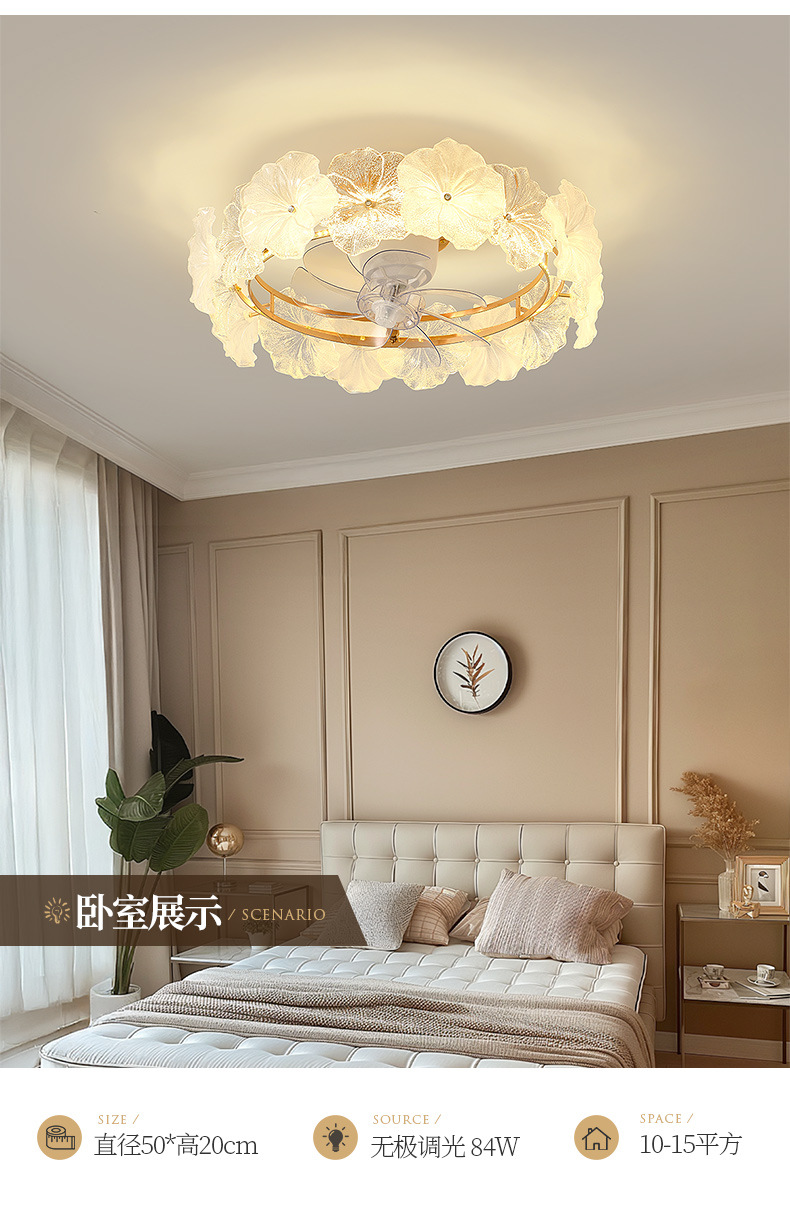 现代简约风扇灯奶油风温馨浪漫花朵吸顶灯房间灯具法式轻奢卧室灯