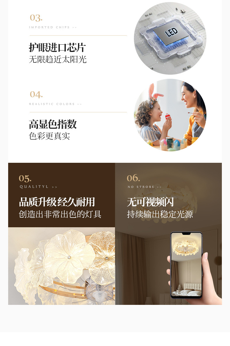 中世スタイルのリビングルームのシャンデリアフレンチレトロなレストランハイエンドアンバー寝室ランプクリエイティブ花びらシャンデリア