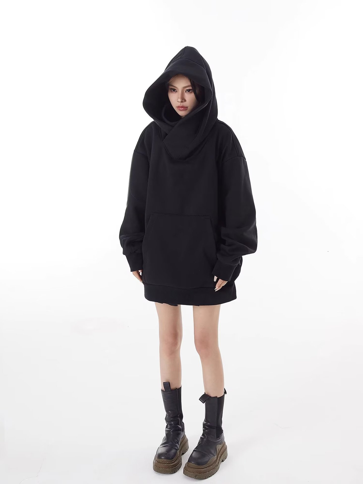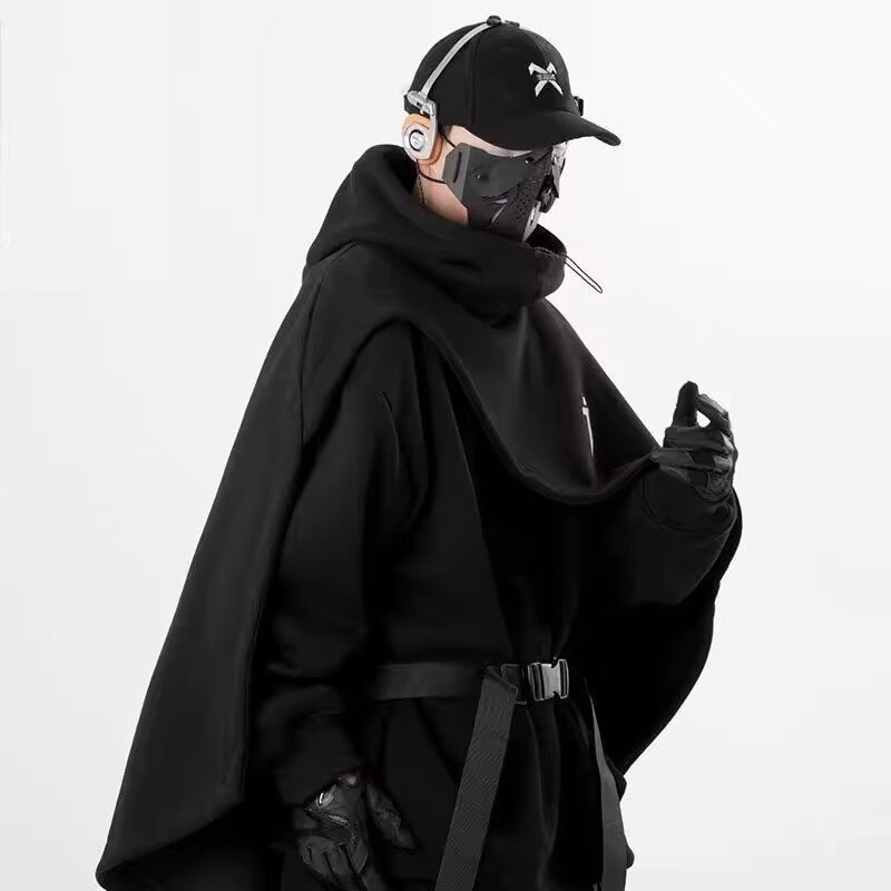 社恐黑武士冲锋卫衣男秋冬款重磅机能外套oversize美式高领连帽衫