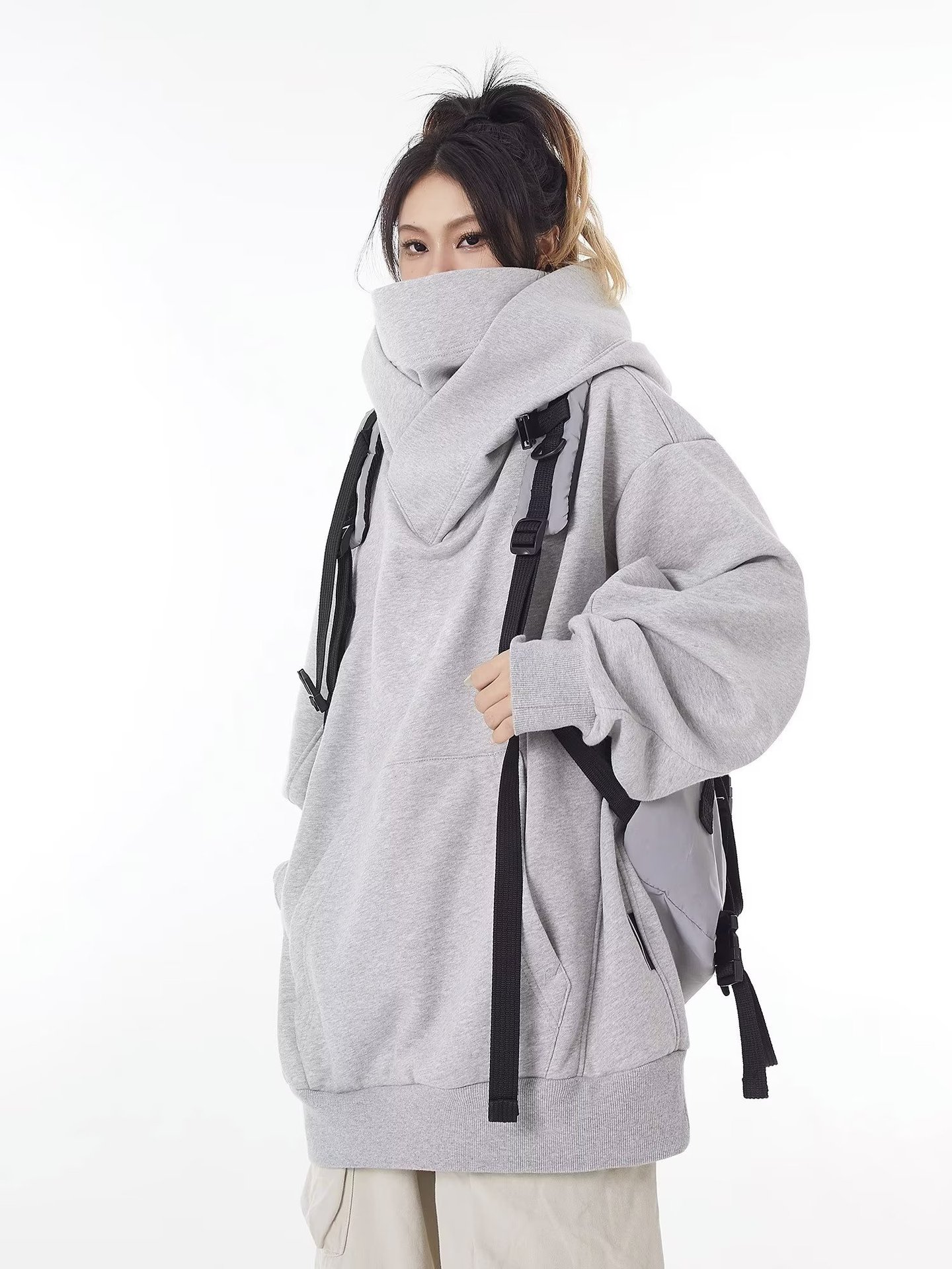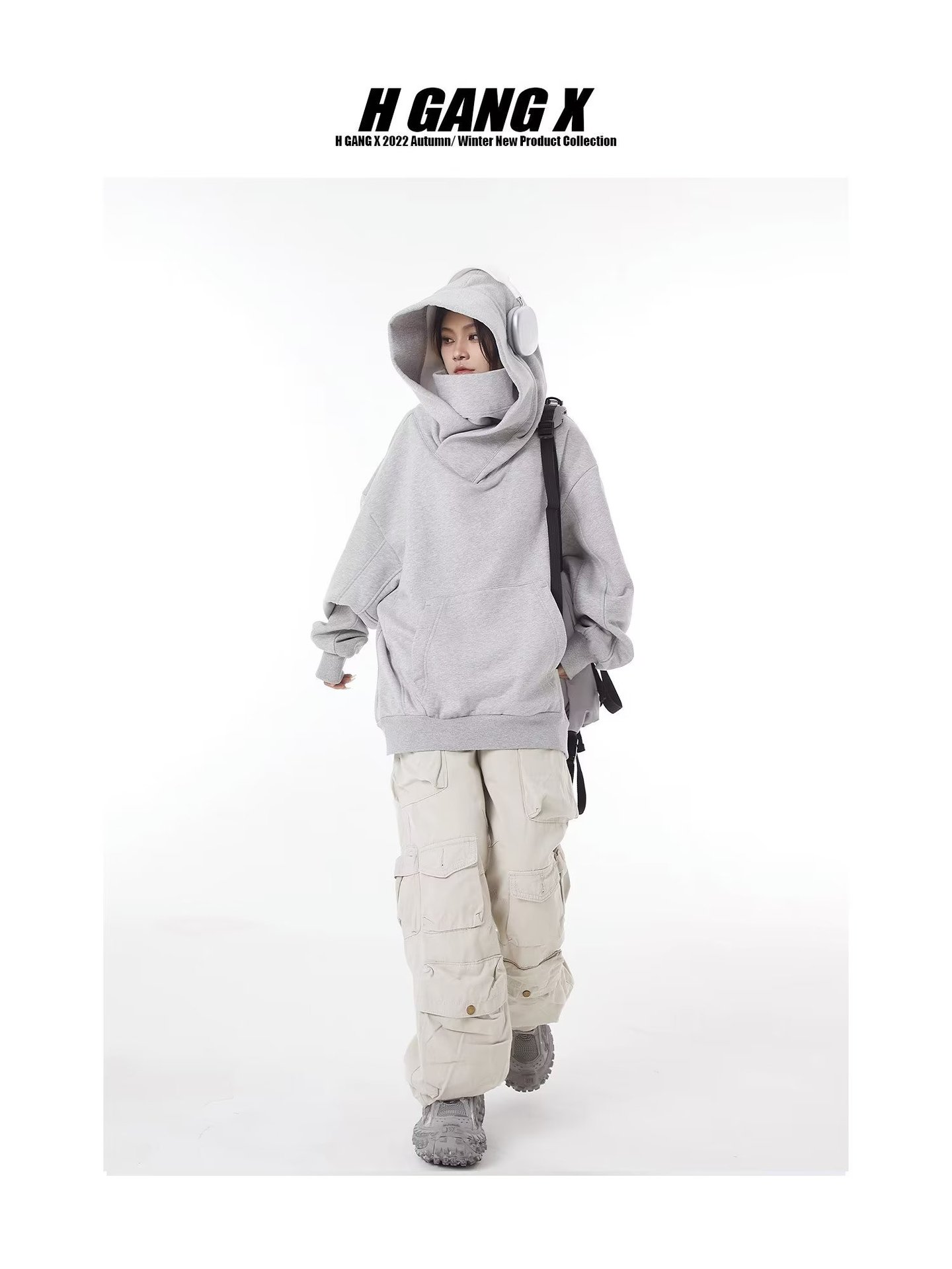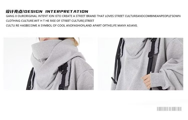 美式潮牌机能风外套高领连帽加绒卫衣男女小众设计感宽松社恐上衣