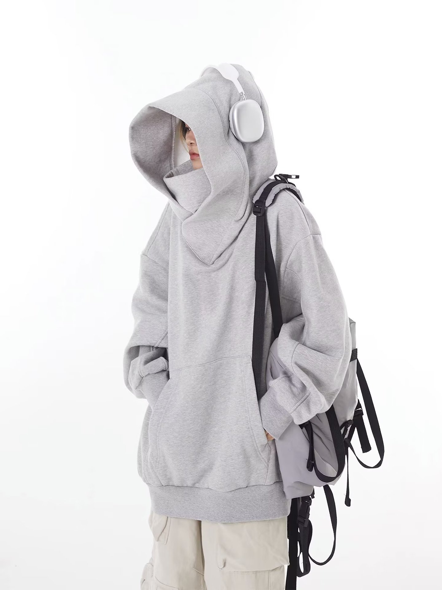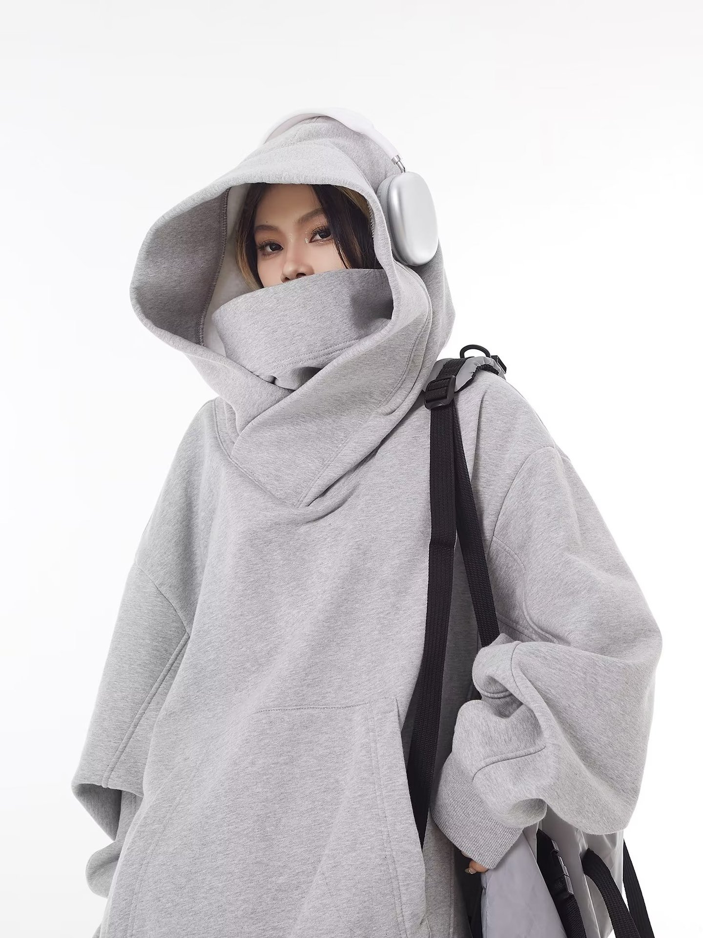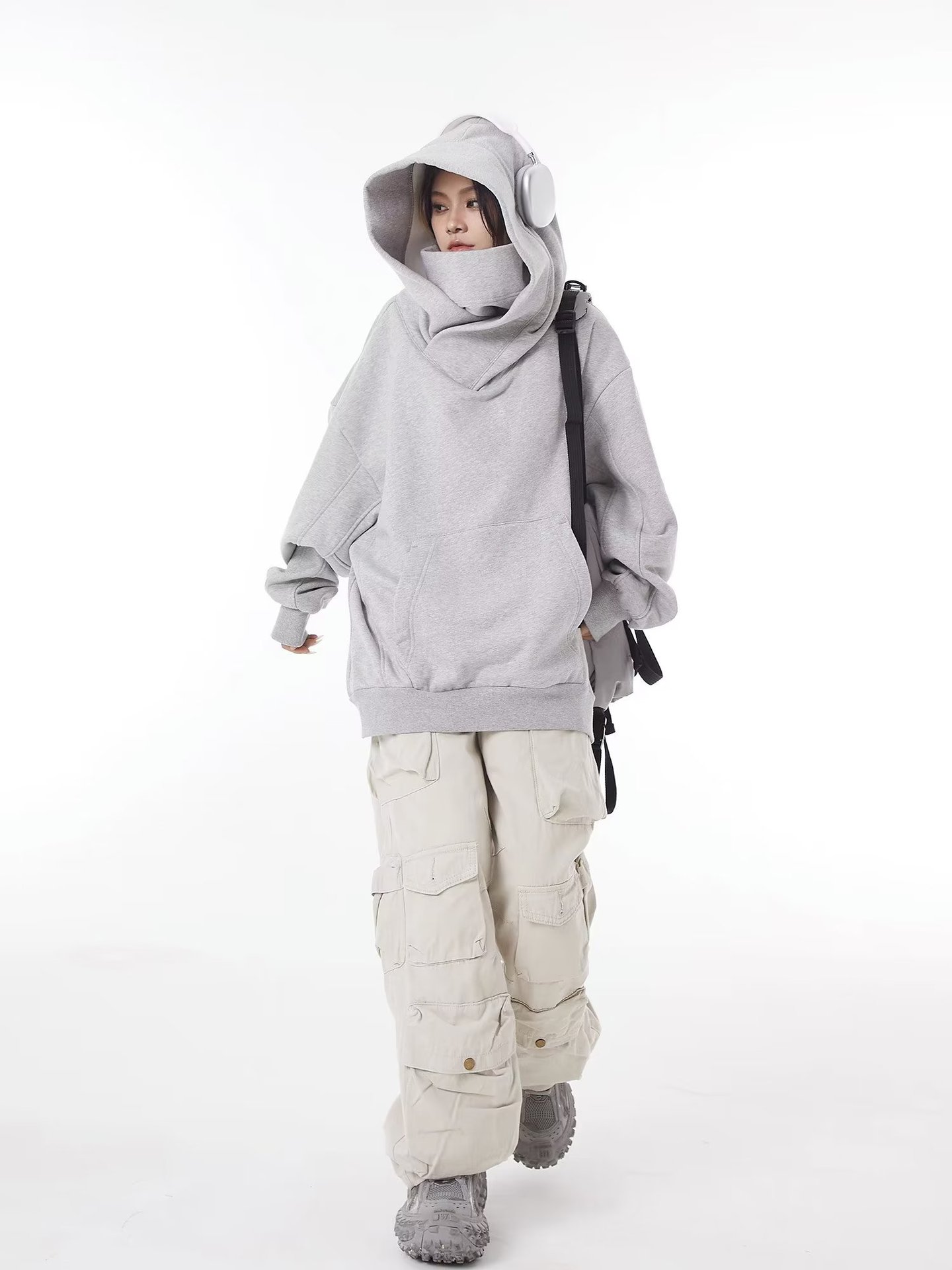 美式潮牌机能风外套高领连帽加绒卫衣男女小众设计感宽松社恐上衣
