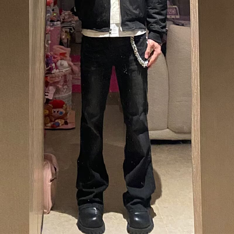 アメリカのレトロな煙の灰色の女性の腰のジーパンは韓国の外の単一の男女を引きずってゆったりしているまっすぐな筒の広い足のズボンを出します。