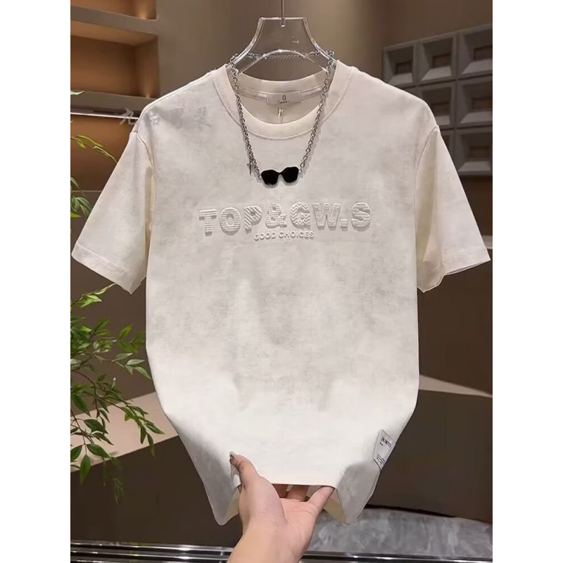 2025新型アメリカ国潮刺繍アルファベット半袖tシャツ男性ゆるい半袖スエードカップル同種半袖