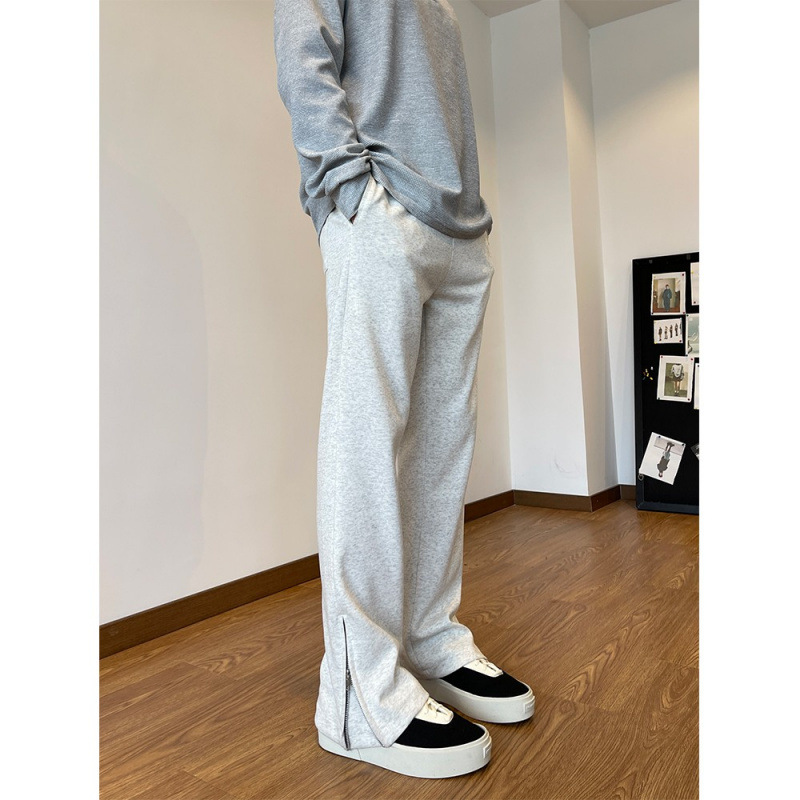 アメリカンスタイルのストレート微フレアカジュアルパンツ、男女兼用、カップル向け、2025年春新作、裏起毛・厚手、韓国風スポーツパンツ、トレンド