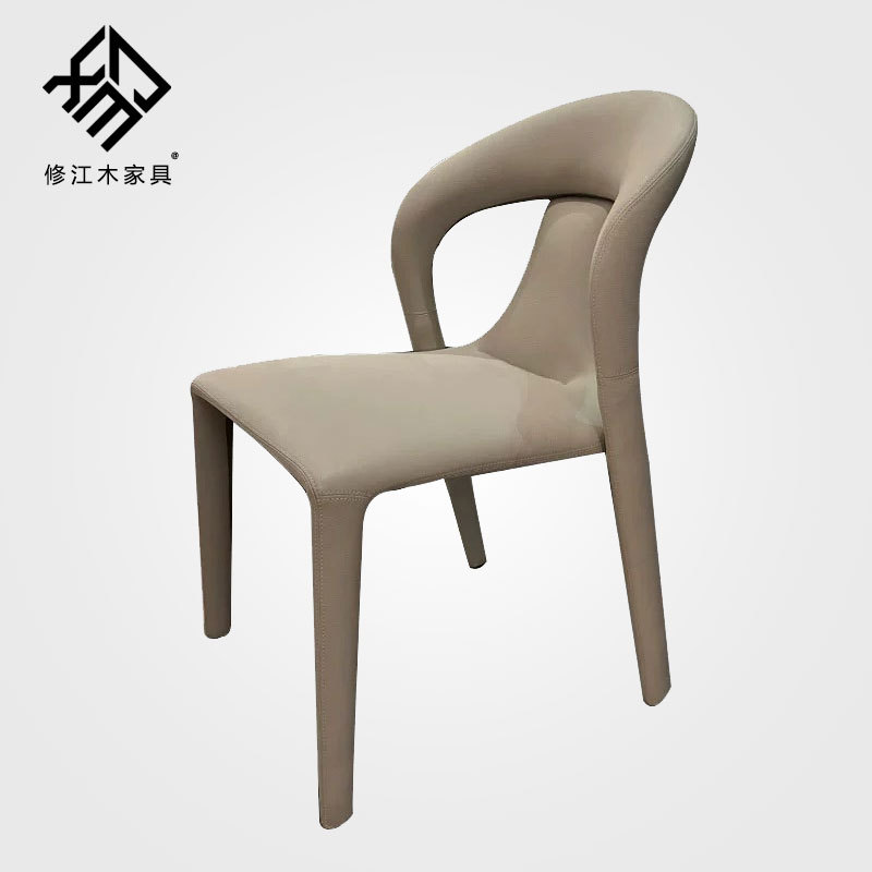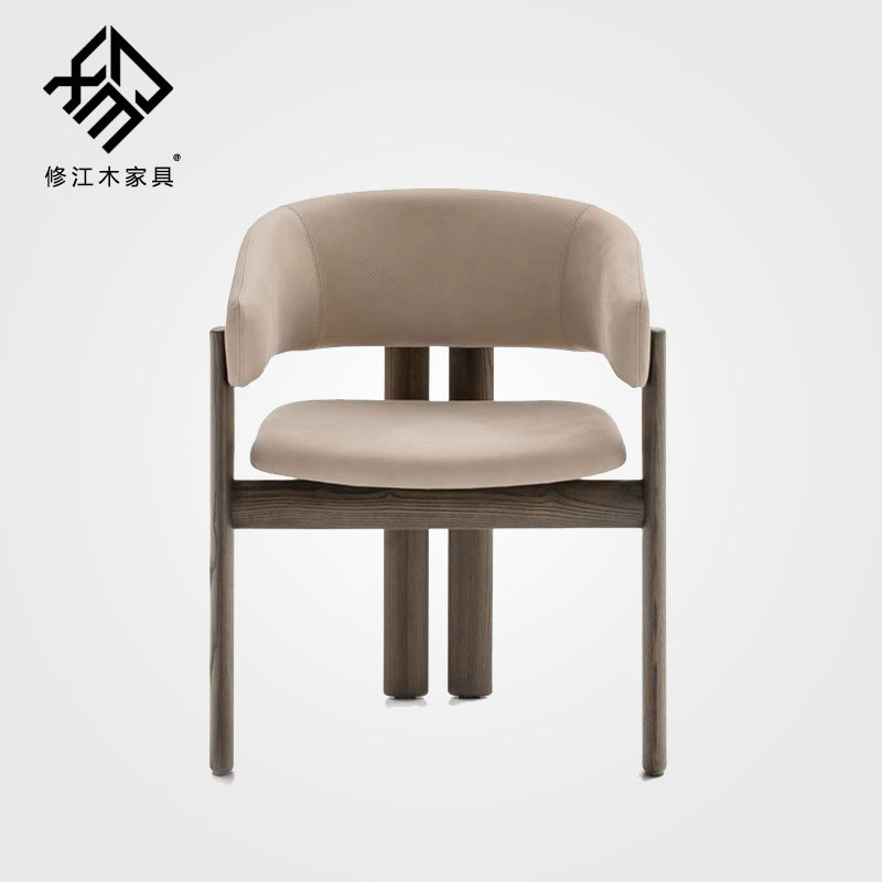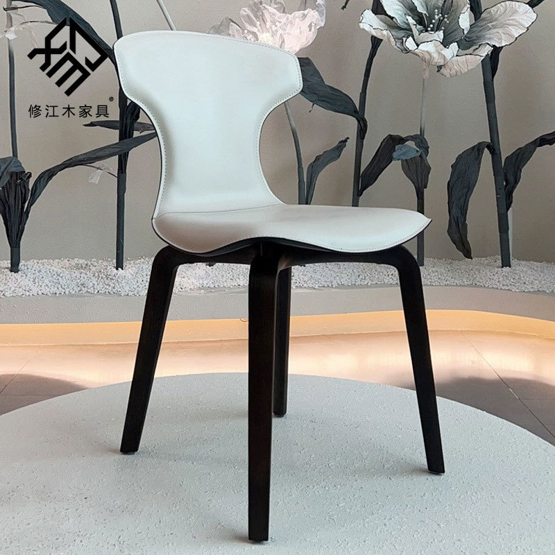 イタリアのミニマリストレザーダイニングチェアホームデザイナークリエイティブレジャーチェアホテルハイエンド無垢材会議交渉椅子