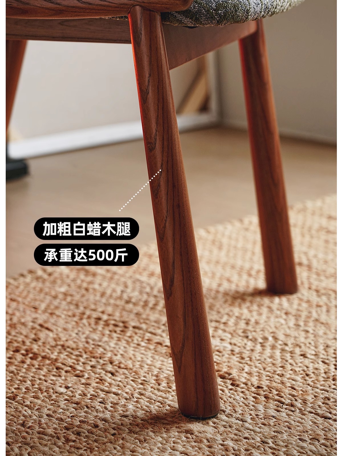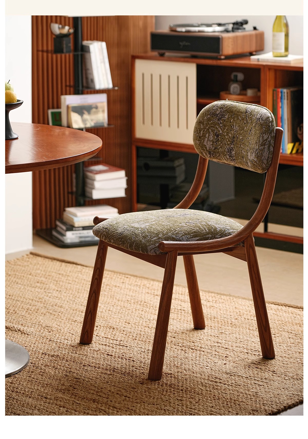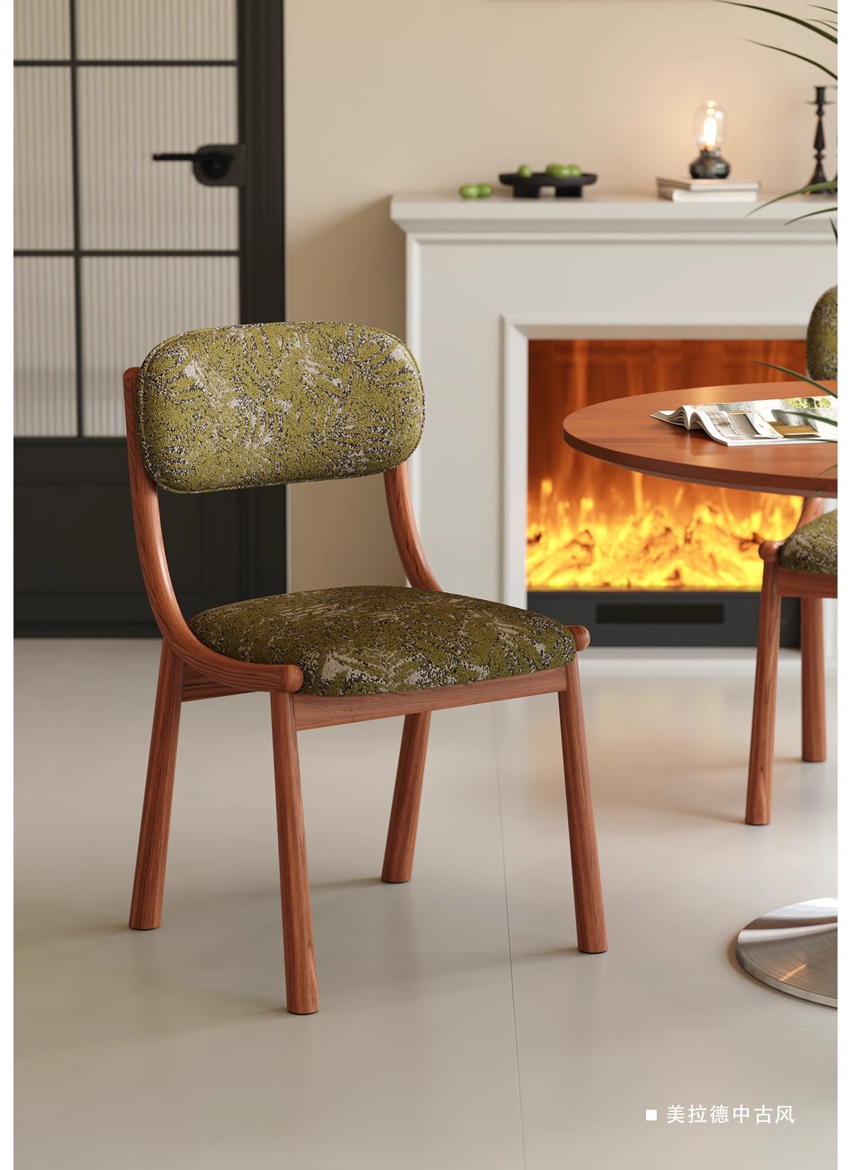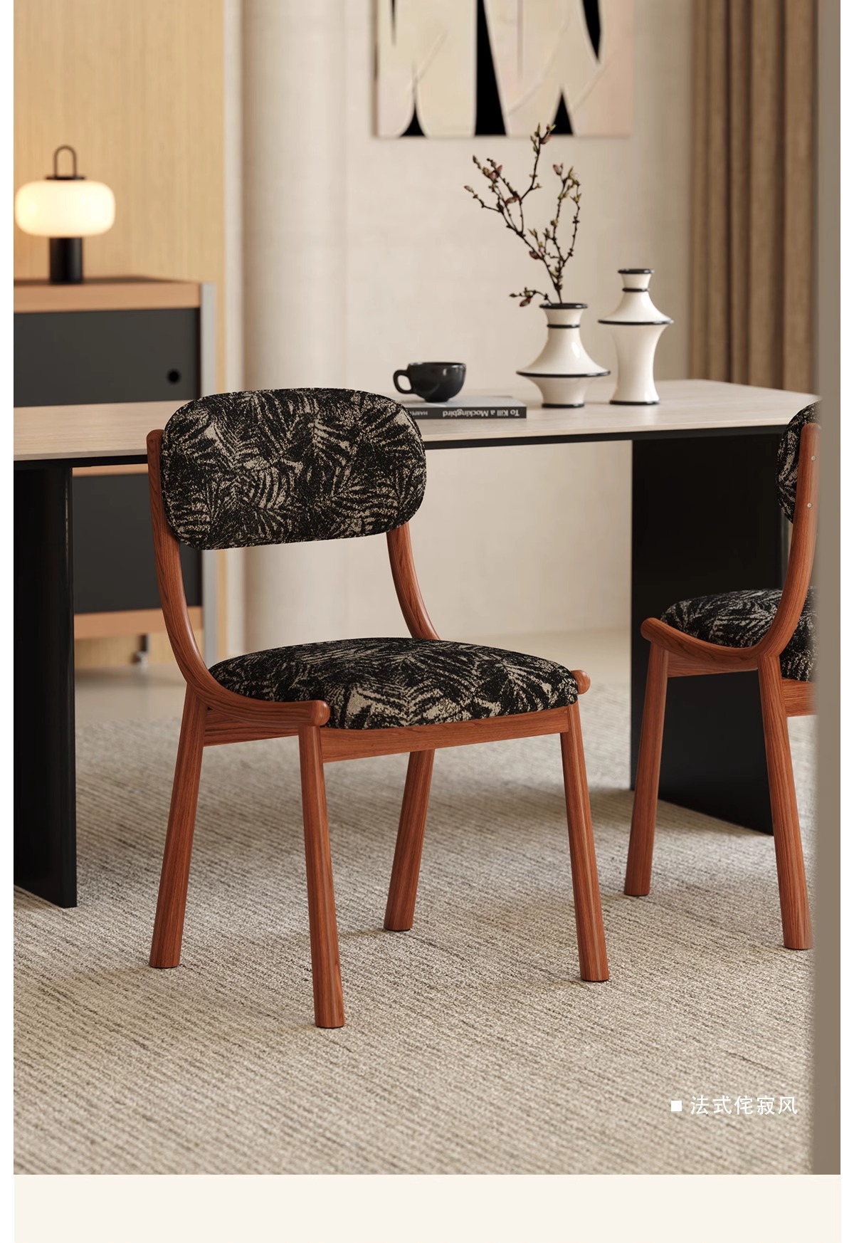 猫耳朵餐椅家用靠背小户型实木中古侘寂风吃饭软包餐厅设计师椅子