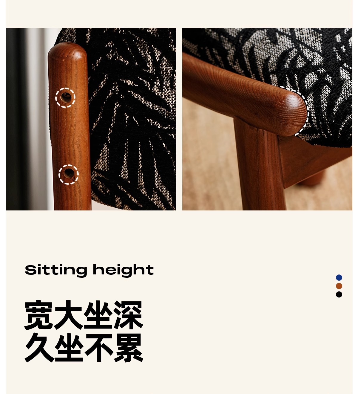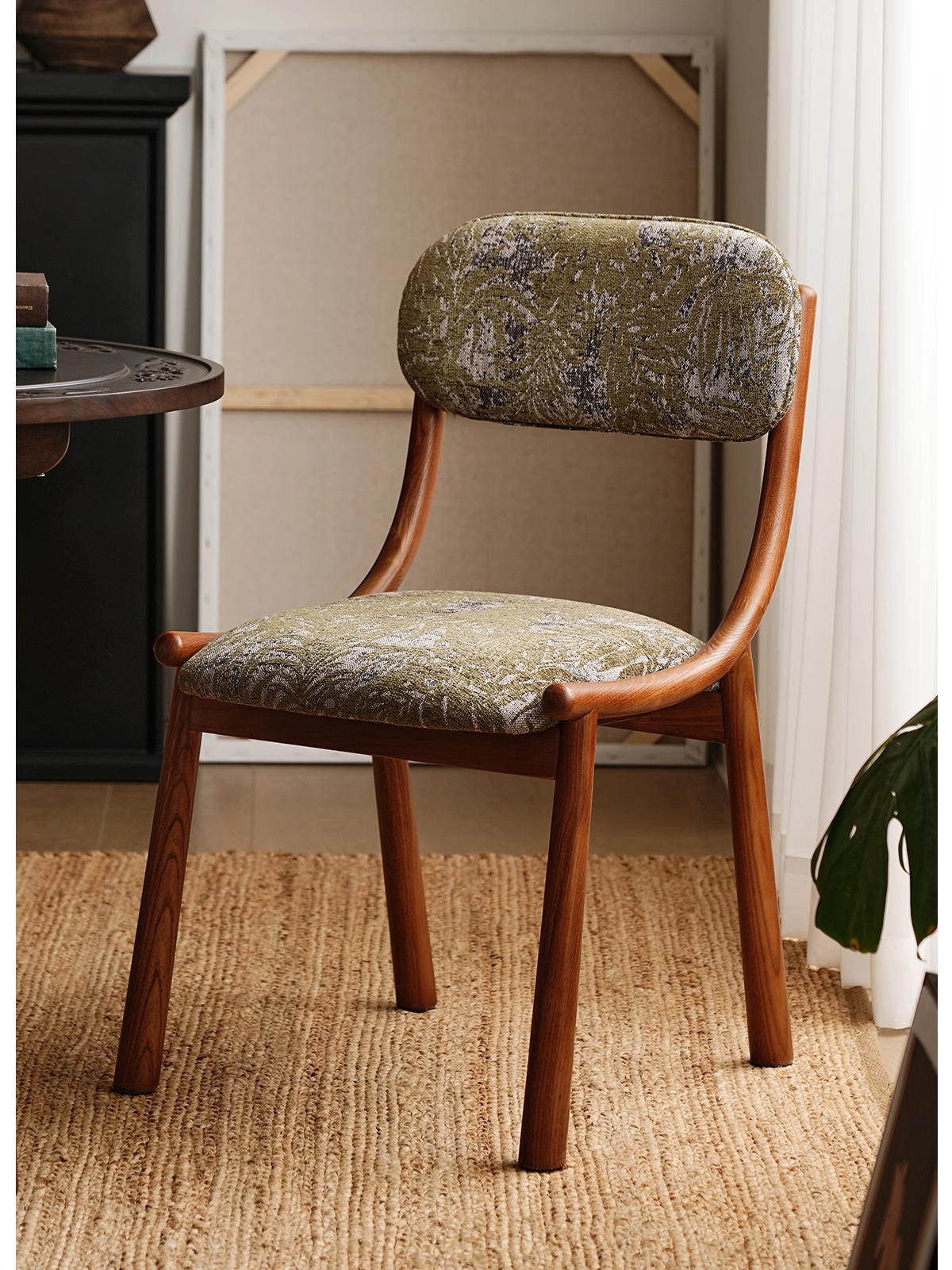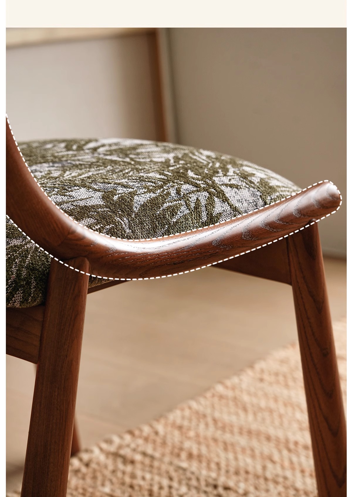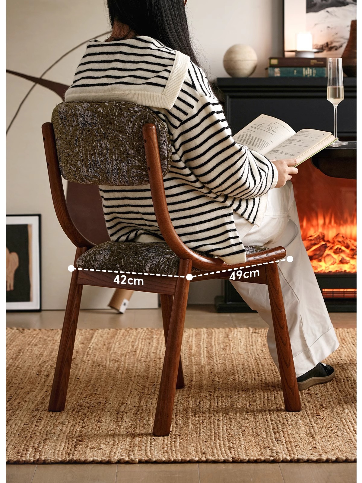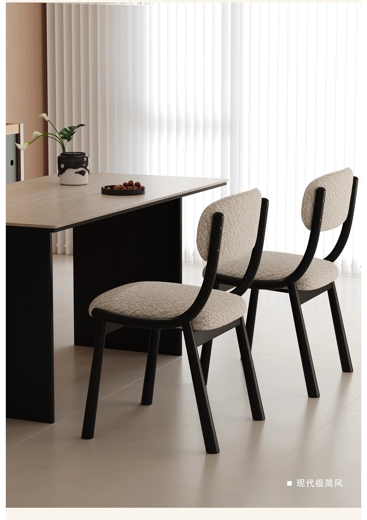 猫耳朵餐椅家用靠背小户型实木中古侘寂风吃饭软包餐厅设计师椅子