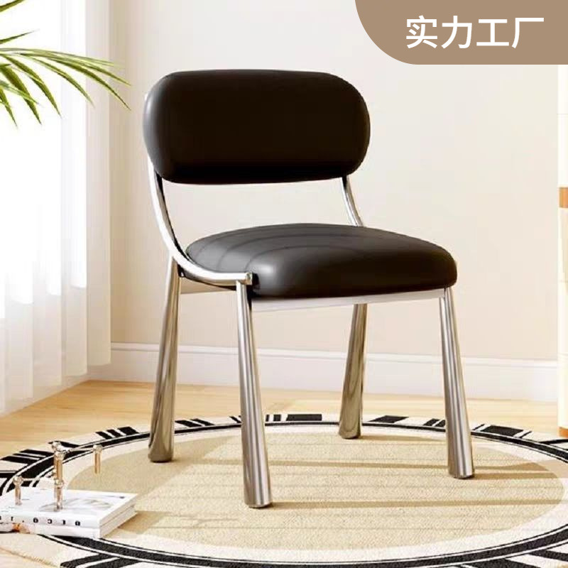 中古风小羊肖恩椅家用餐椅现代简约靠背椅黑色金属不锈钢椅梳妆椅