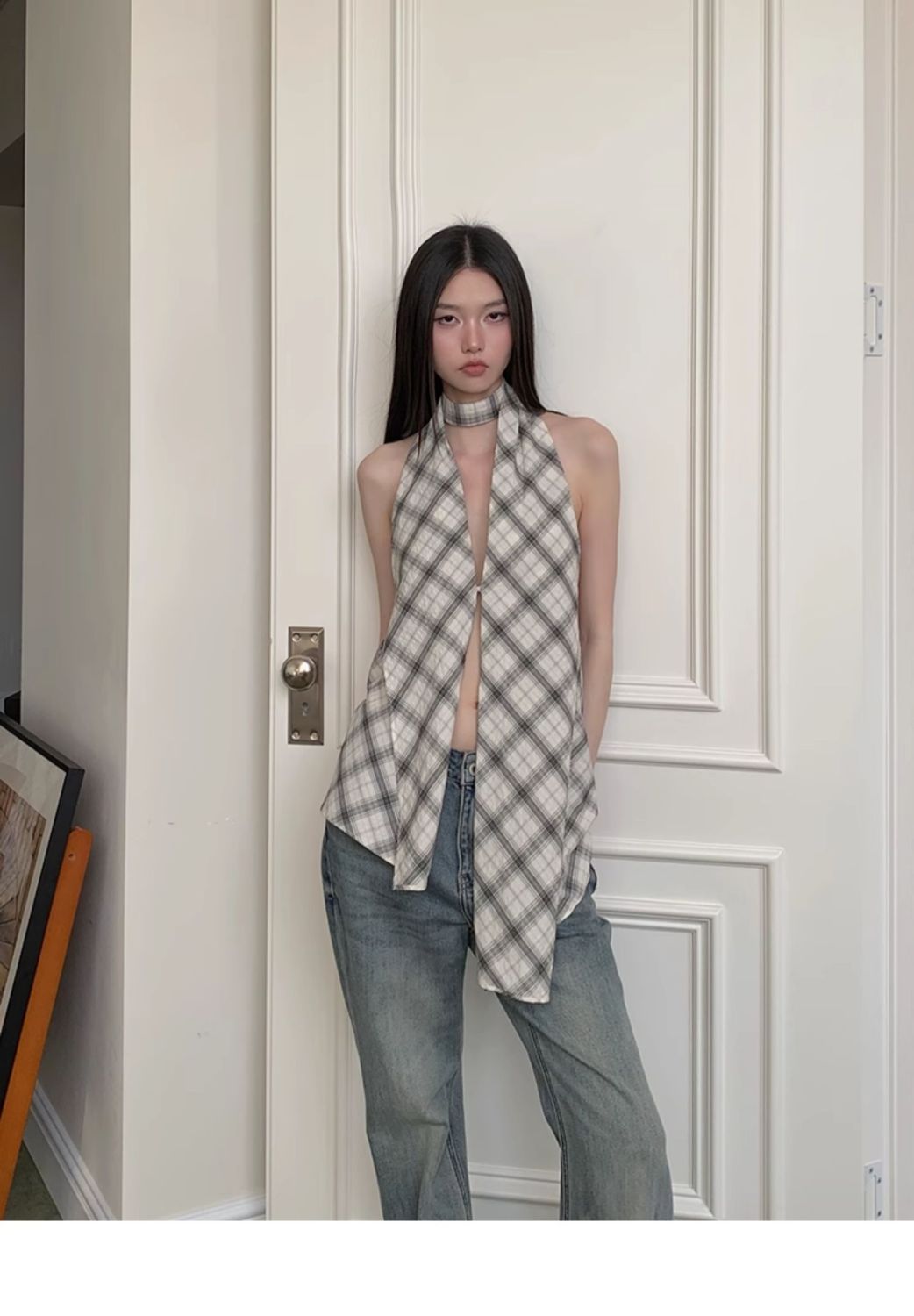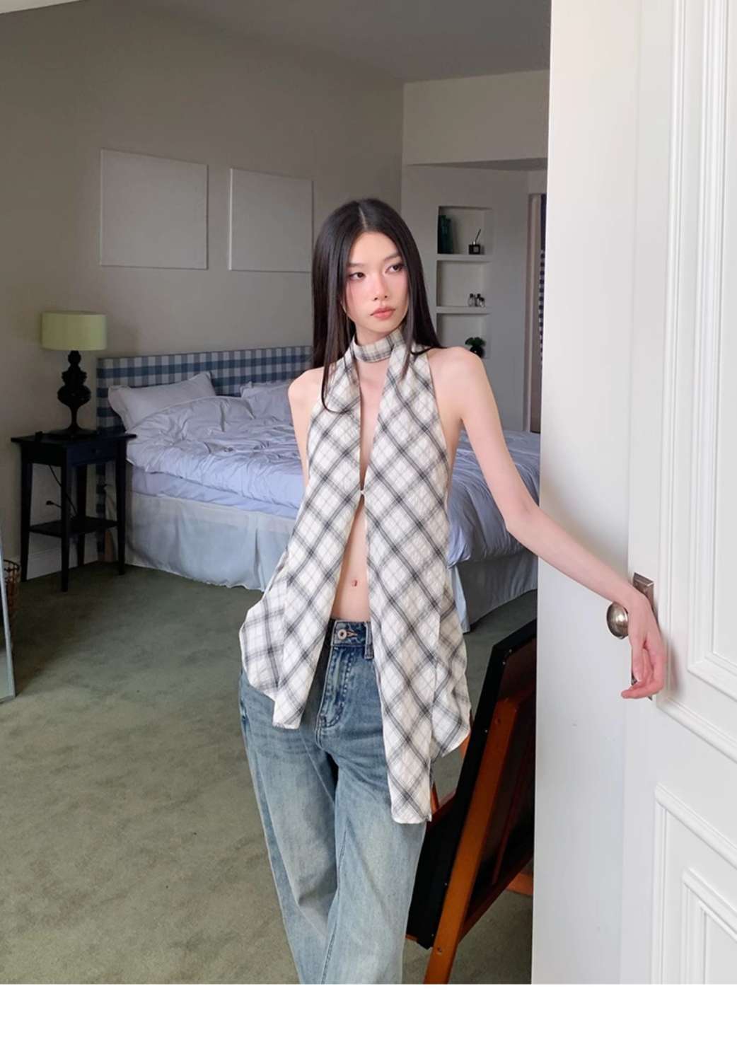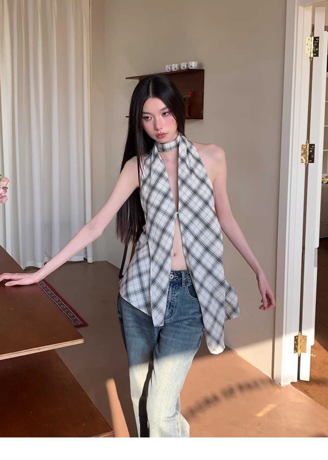 韓国風クロスボーダー輸出、ホルターネックキャミソール、レディースサマーノースリーブ、スリムフィット、背中見せ、プルオーバートップス、トレンド