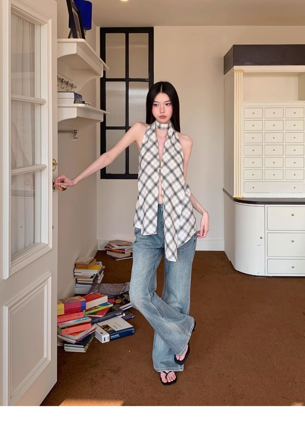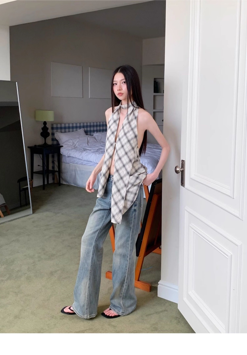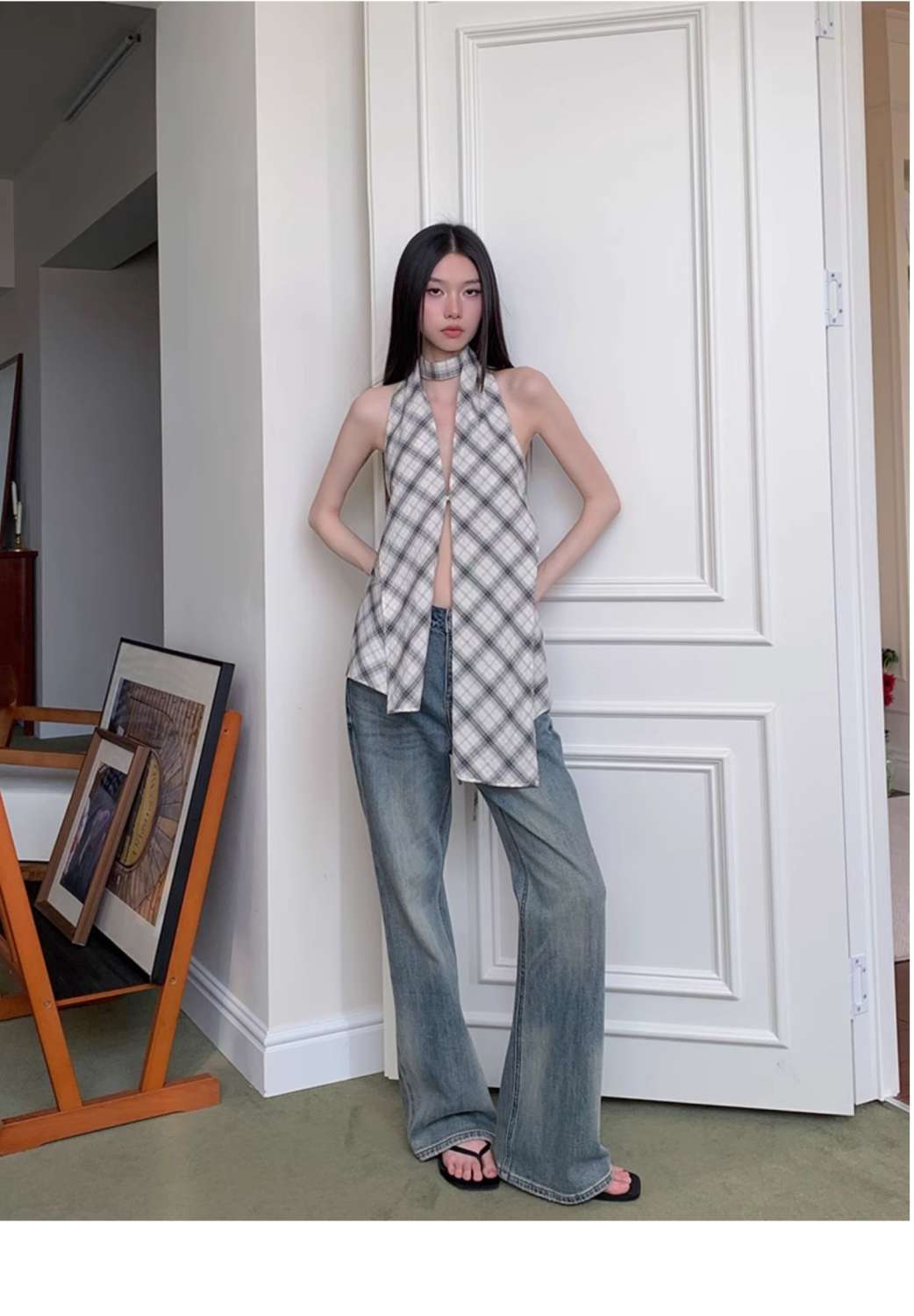 韓国風クロスボーダー輸出、ホルターネックキャミソール、レディースサマーノースリーブ、スリムフィット、背中見せ、プルオーバートップス、トレンド