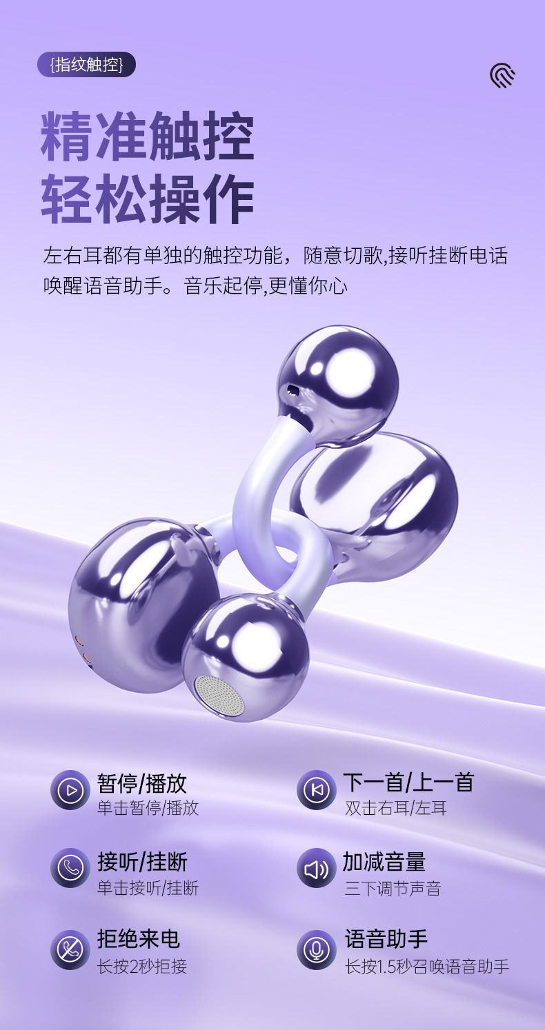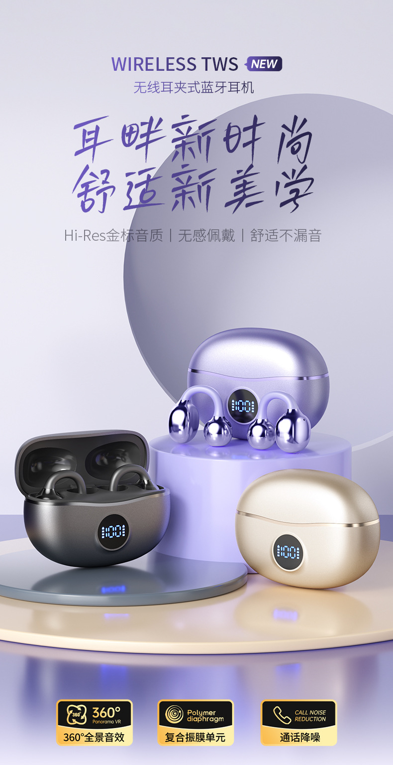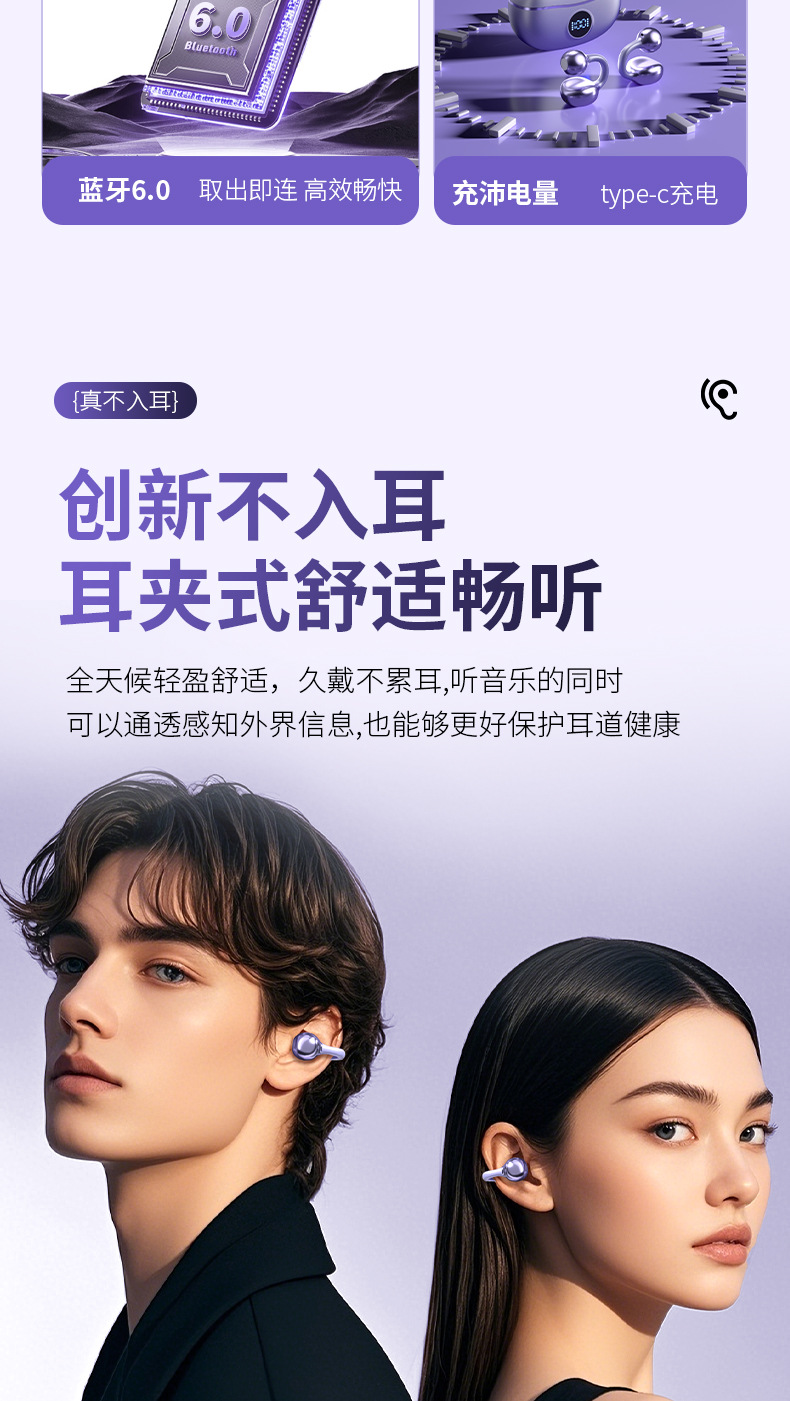 新款私摸高颜值耳夹式蓝牙耳机骨传导不入耳舒适佩戴狂甩不掉耳机