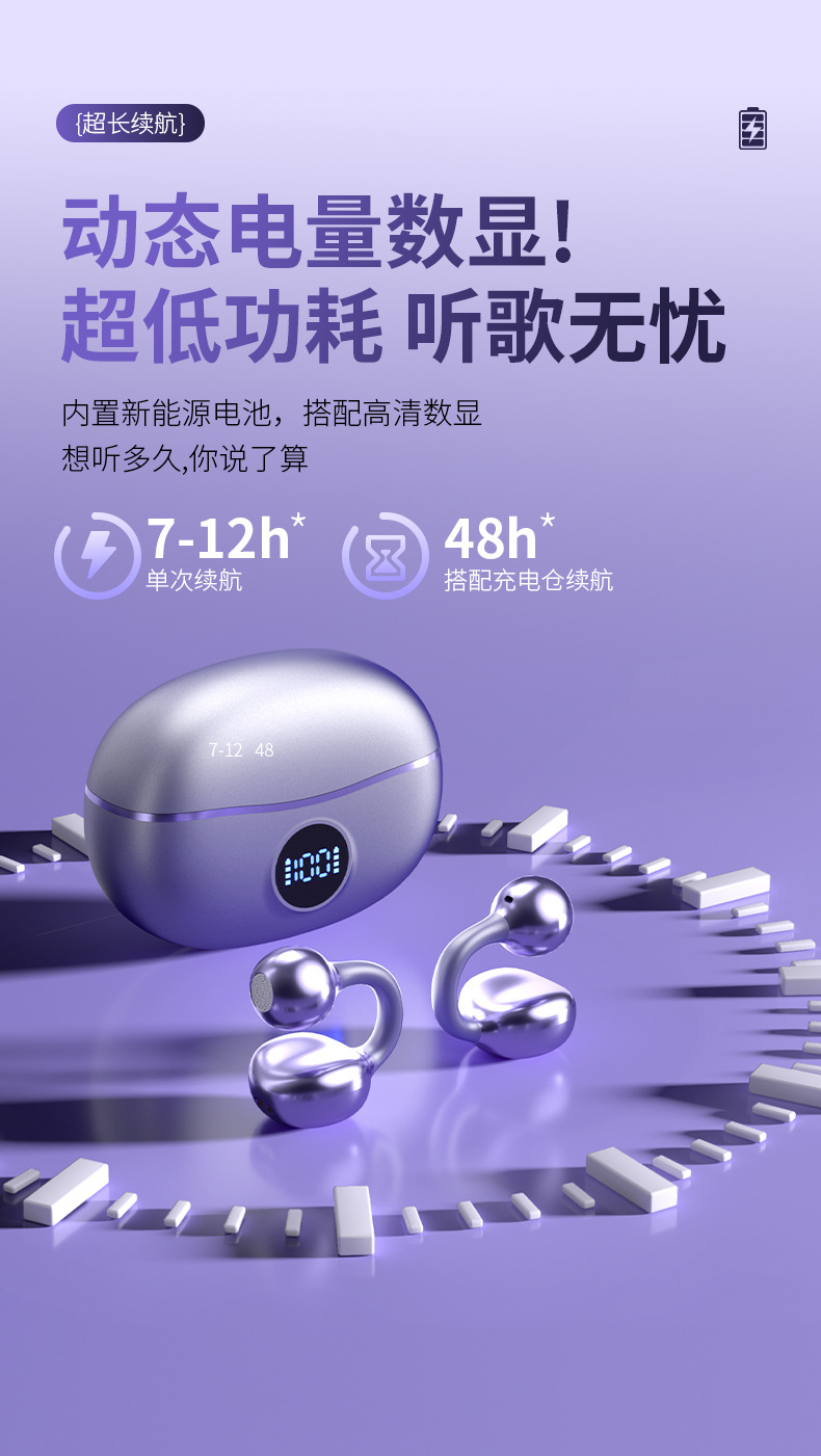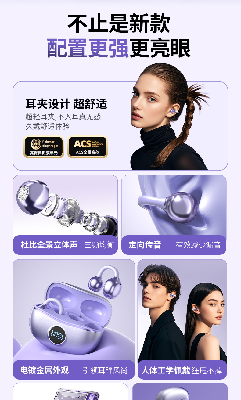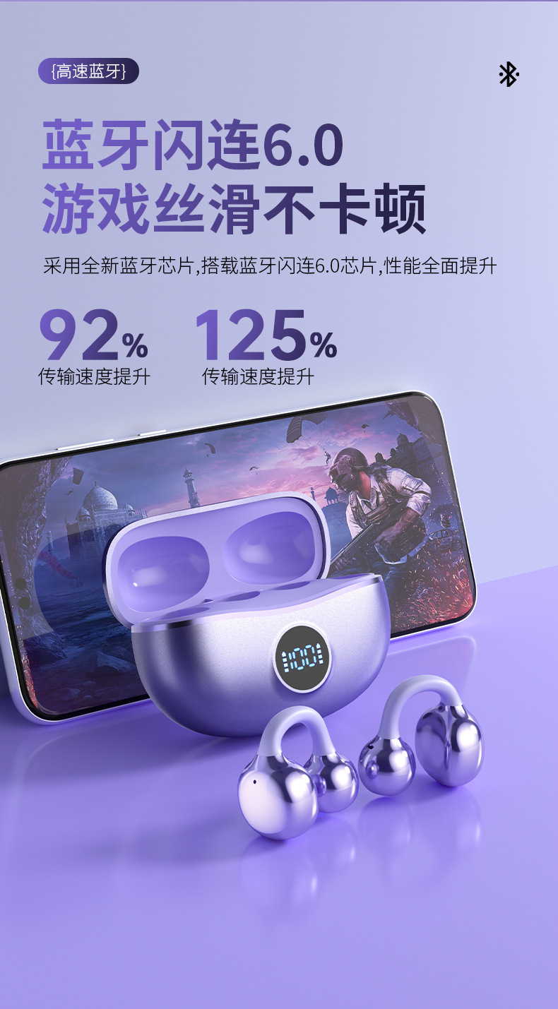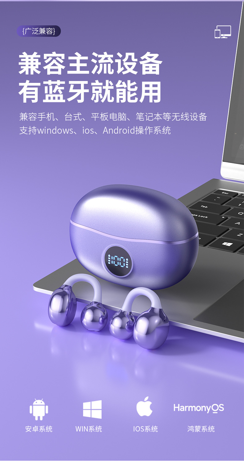 新款蓝牙耳机超长续航大电量降噪气传导不入耳运动耳夹男女通用