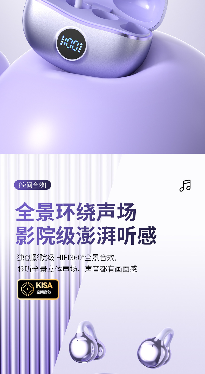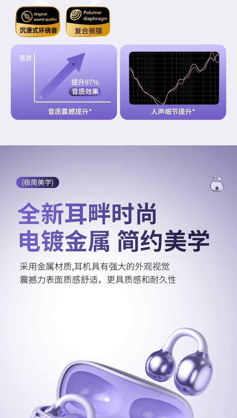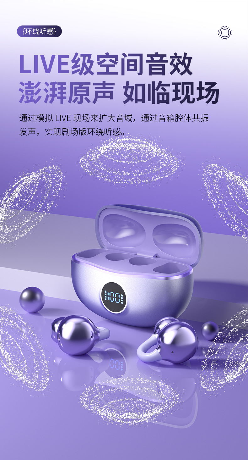 新款蓝牙耳机超长续航大电量降噪气传导不入耳运动耳夹男女通用