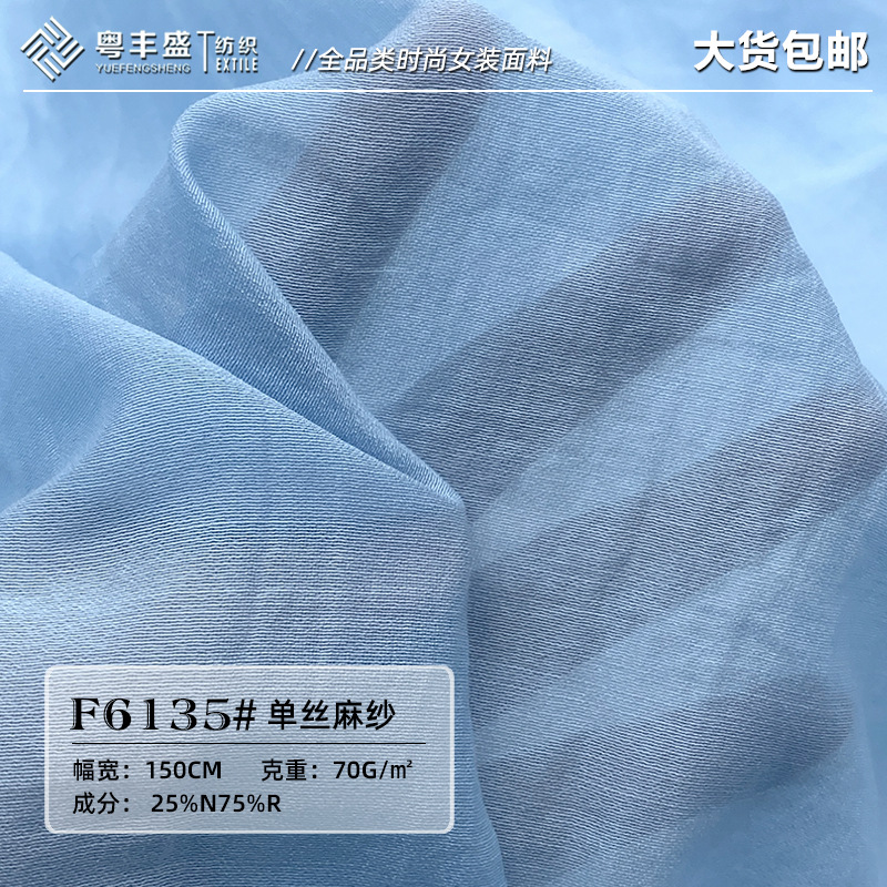 单丝麻纱锦纶人棉肌理布料 雪纺衫连衣裙防晒时装汉服天丝面料