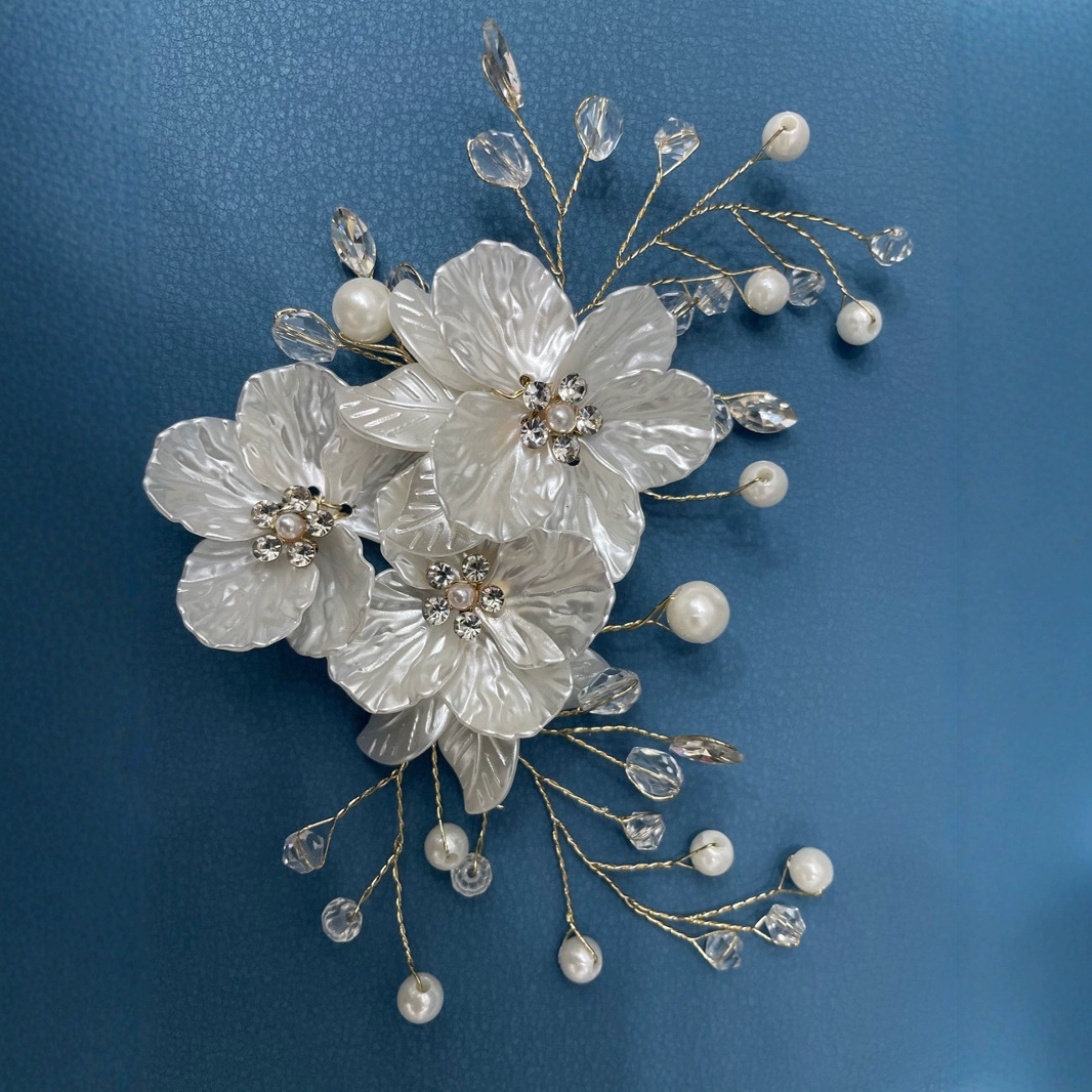 160清新で甘い新婦の髪飾り手作りのビーズの白い花のヘアピンの影楼はアヒルの口の挟みを撮影します。