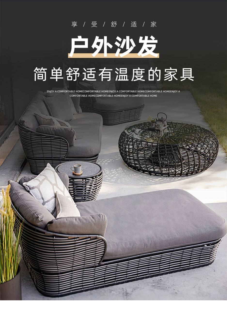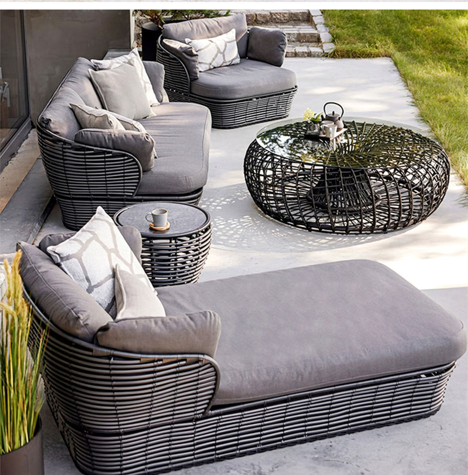 屋外模造籐ソファ防水と日焼け止め屋外バルコニーレジャーベッド組み合わせ中庭ガーデン籐椅子家具